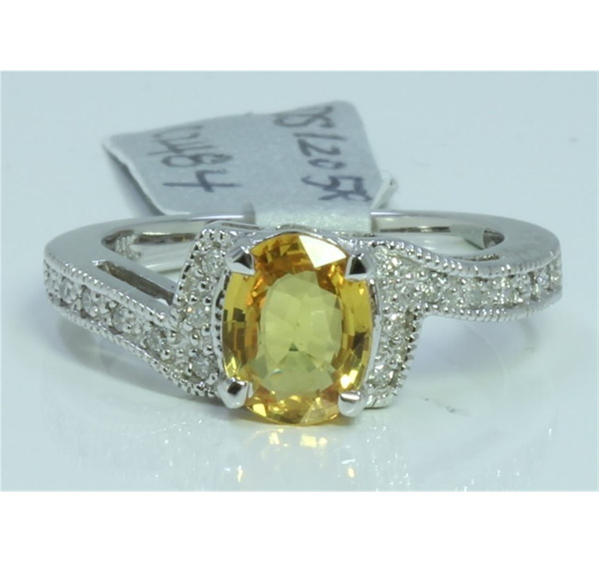 14K WHITE GOLD RING 4.44 GRAM DIAMOND 0.15CT YELLOW SAPPHIRE 1.79CT