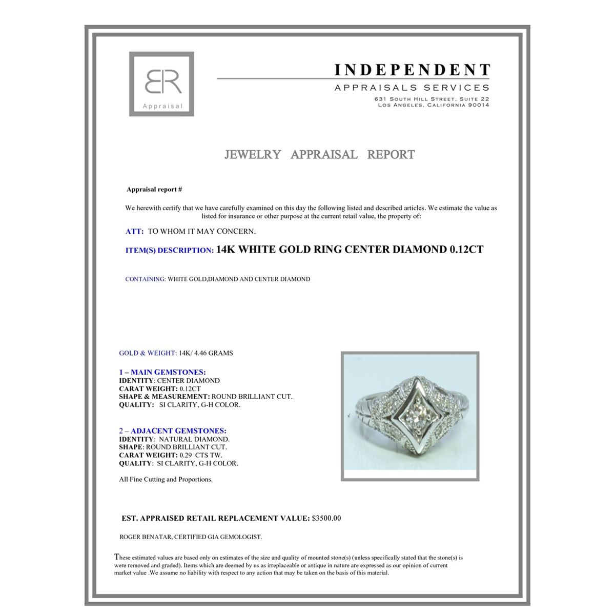 14K WHITE GOLD RING 4.46 GRAM DIAMOND 0.29CT CENTER DIAMOND 0.12CT