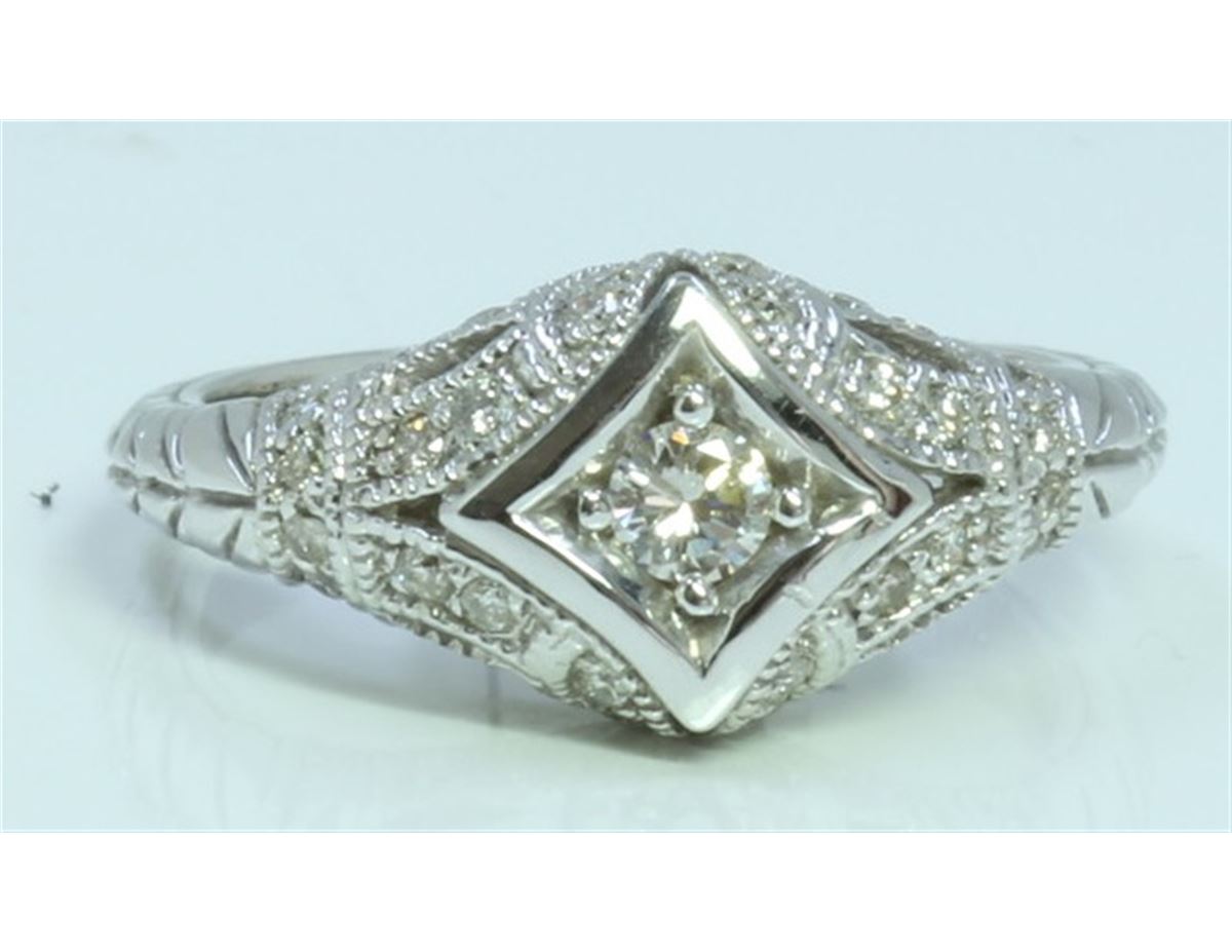 14K WHITE GOLD RING 4.46 GRAM DIAMOND 0.29CT CENTER DIAMOND 0.12CT