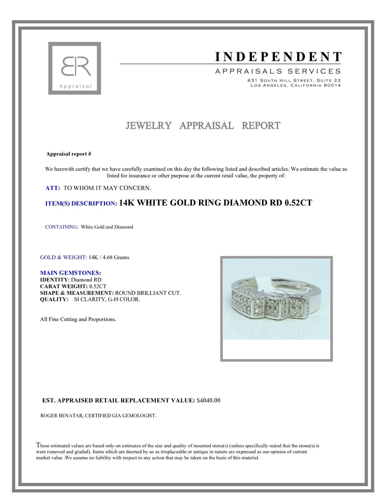 14K WHITE GOLD RING 4.68GRAM DIAMOND RD 0.52CT