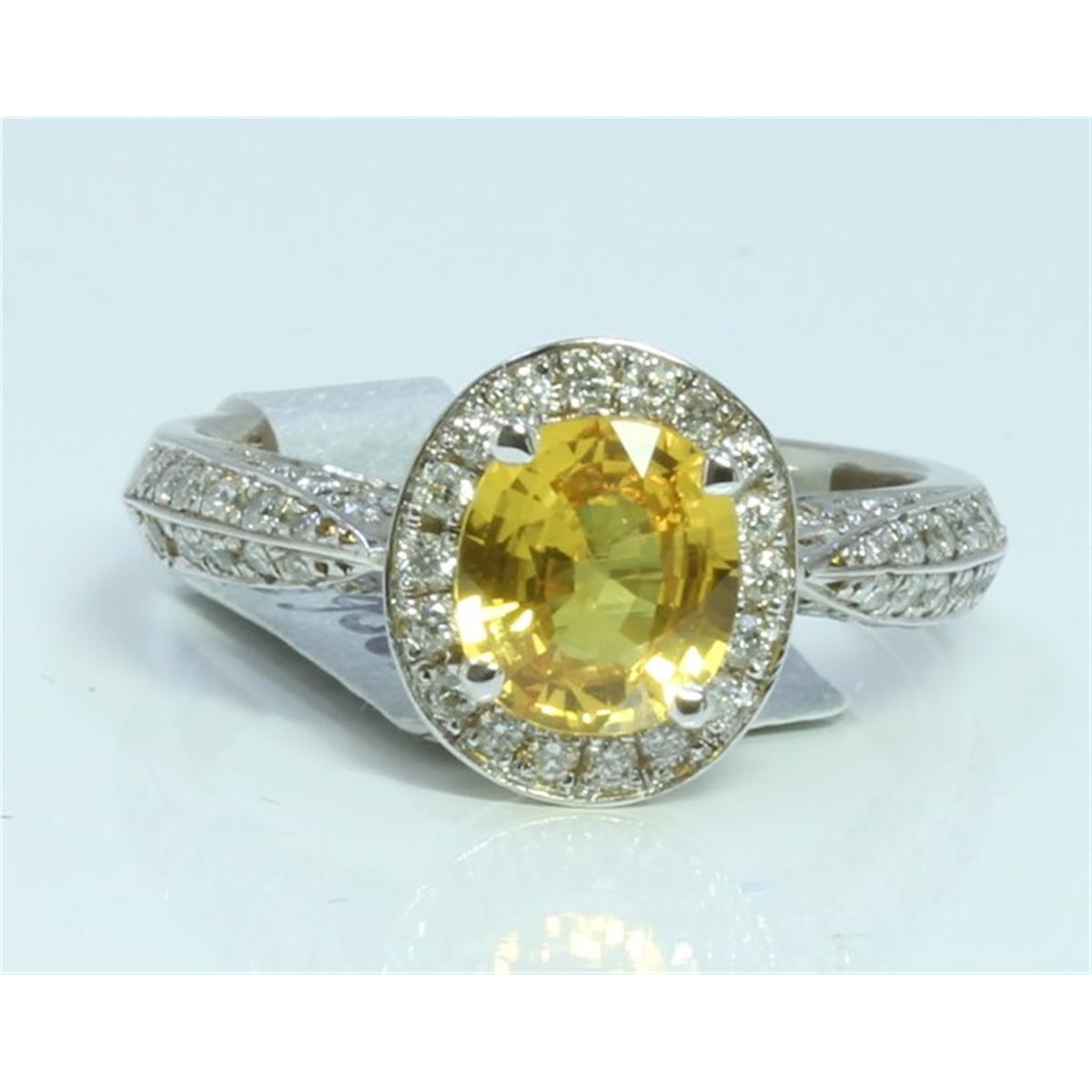 14K WHITE GOLD RING 4.8 GRAM DIAMOND 0.66CT YELLOW SAPPHIRE 1.5CT