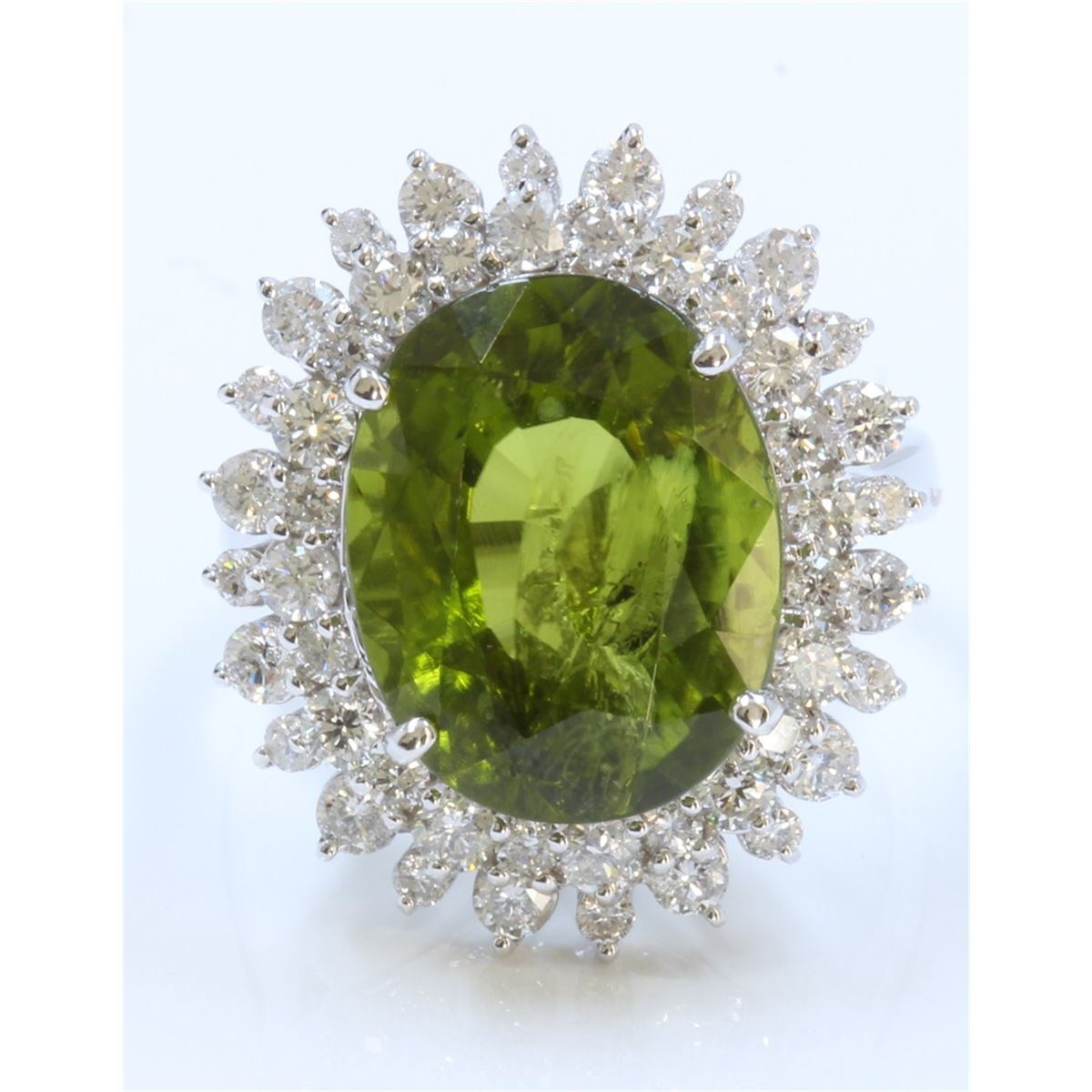 14K WHITE GOLD RING 5.57GRAM DIAMOND 1.49CT GREEN TOURMALINE OVAL 9.04CT