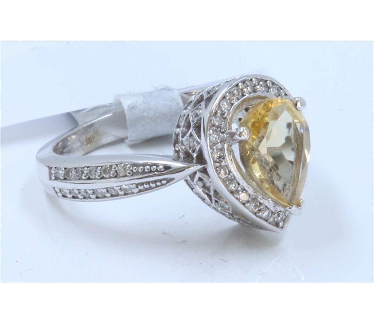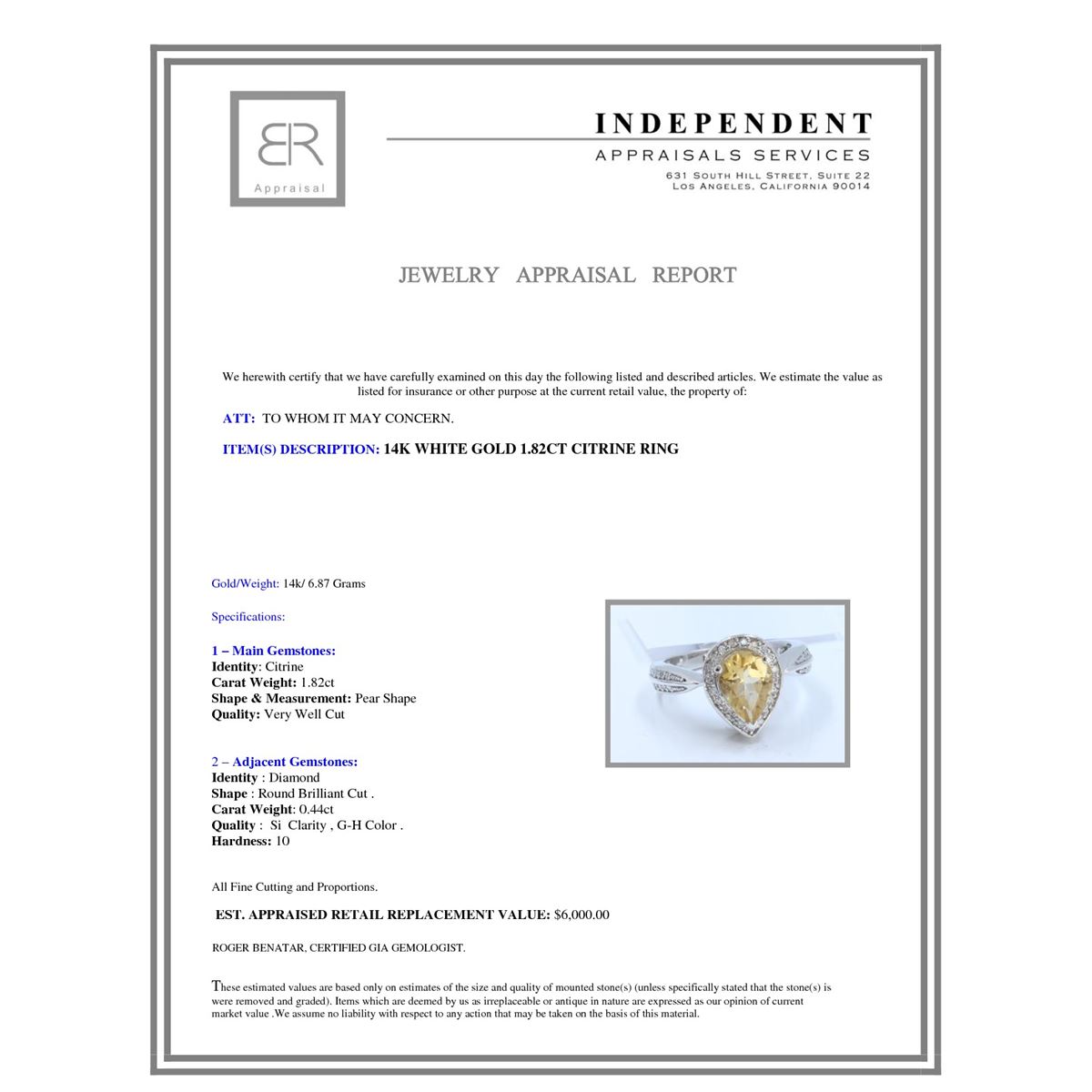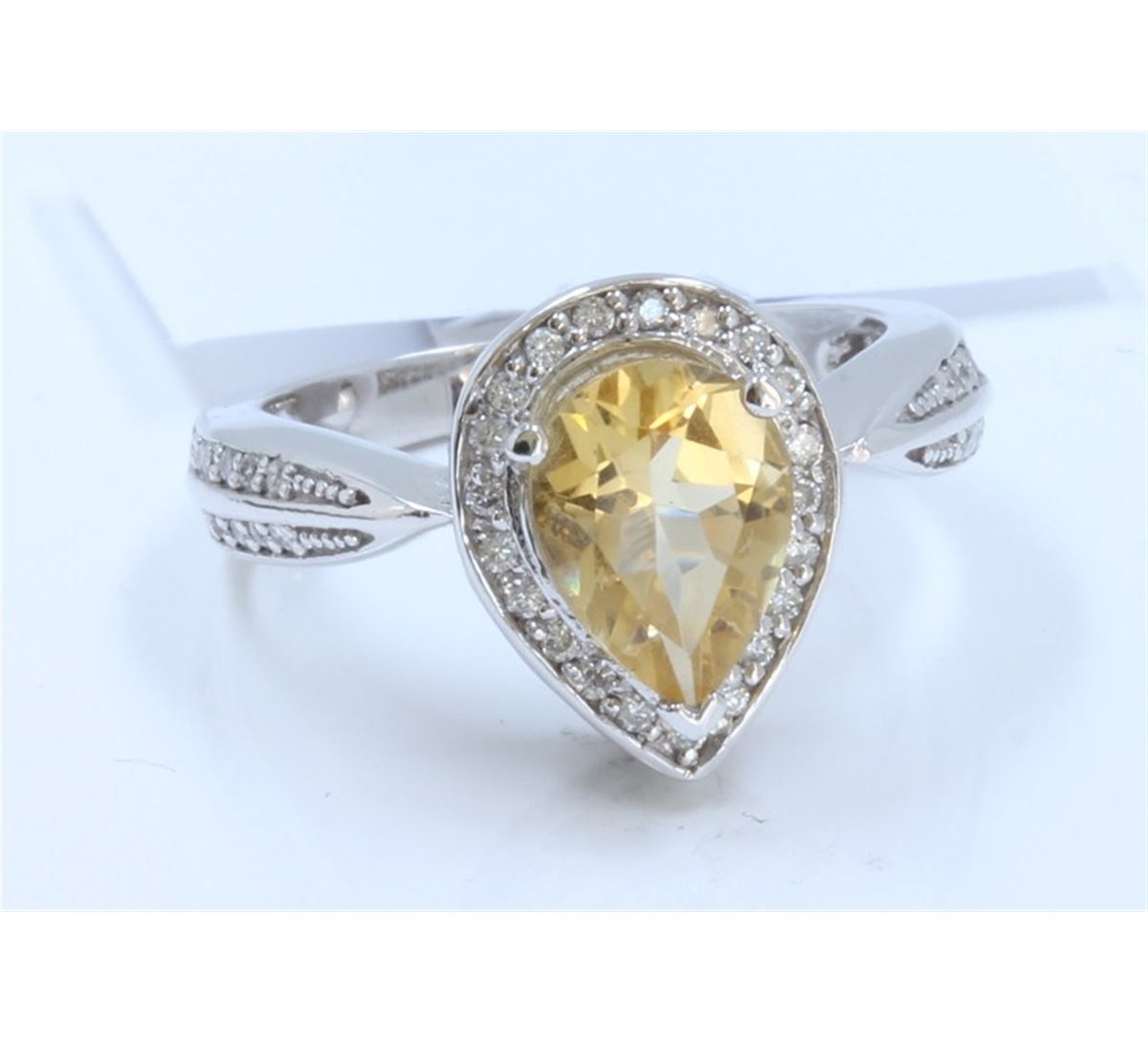 14K WHITE GOLD RING :6.87g/Diamond:0.44ct/Citrine :1.82ct