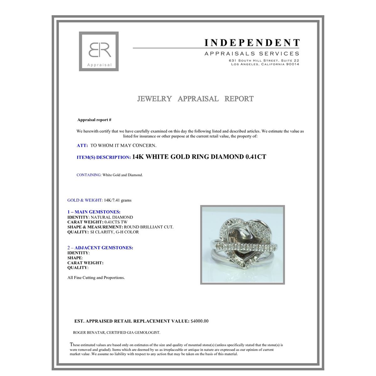14K WHITE GOLD RING 7.41GRAM / DIAMOND 0.41CT GH COLOR Si CLARITY