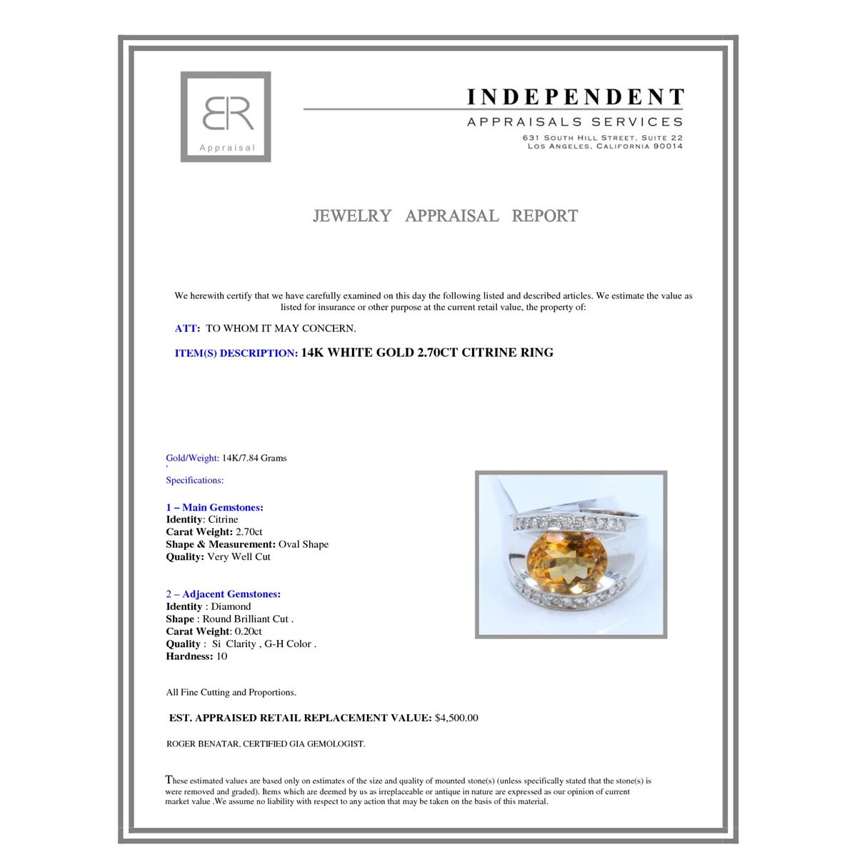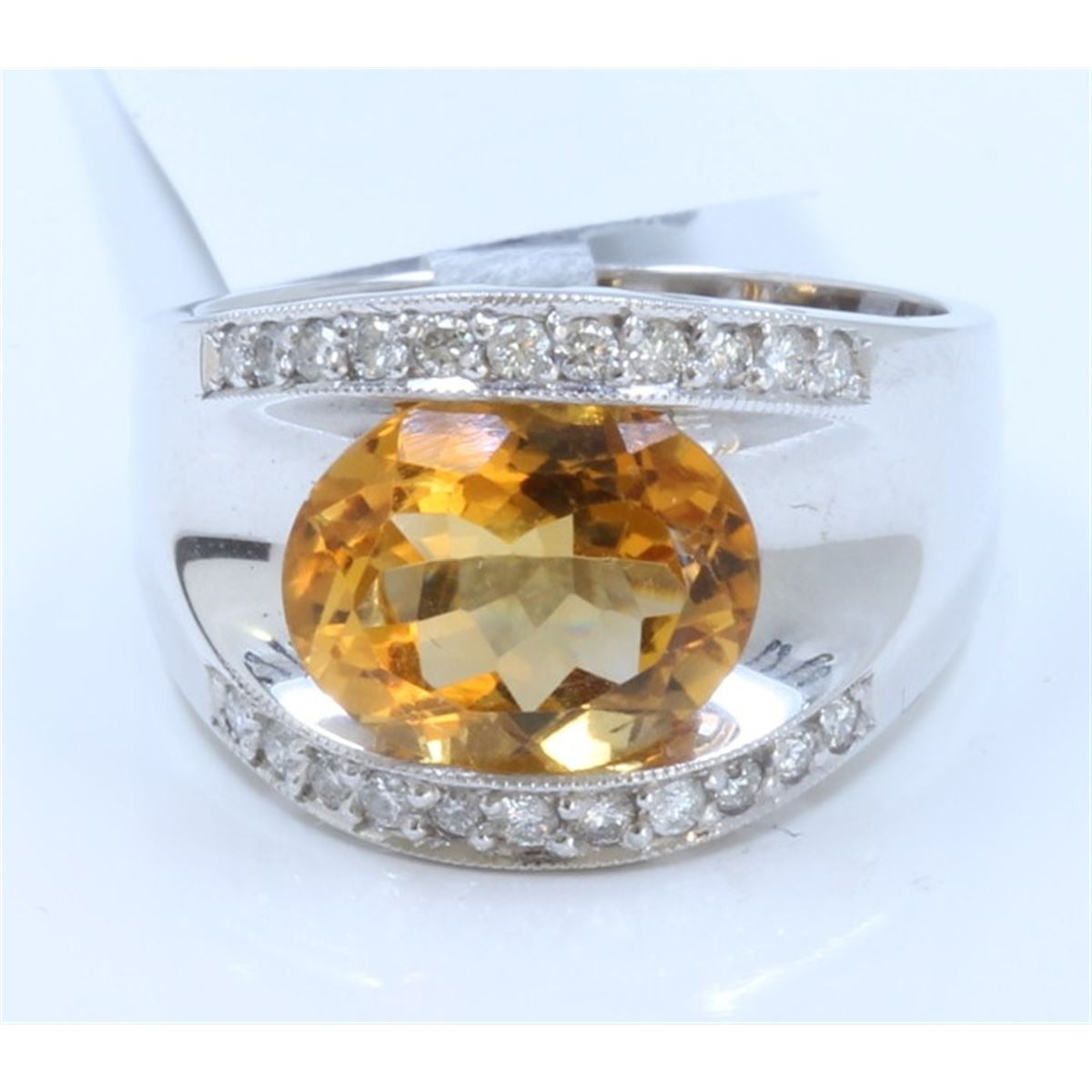 14K WHITE GOLD RING:7.84g/Diamond:0.2ct/Citrine:2.7ct