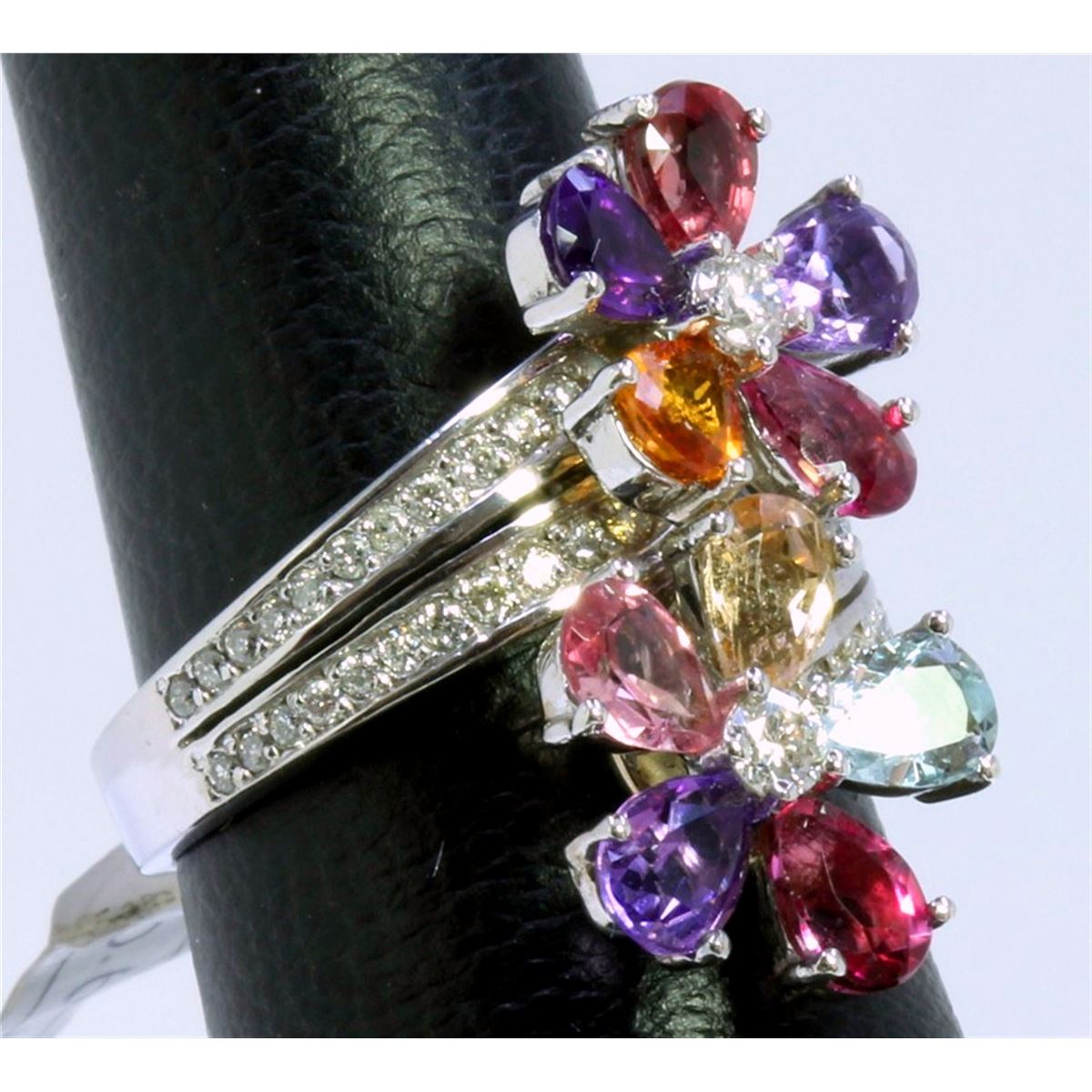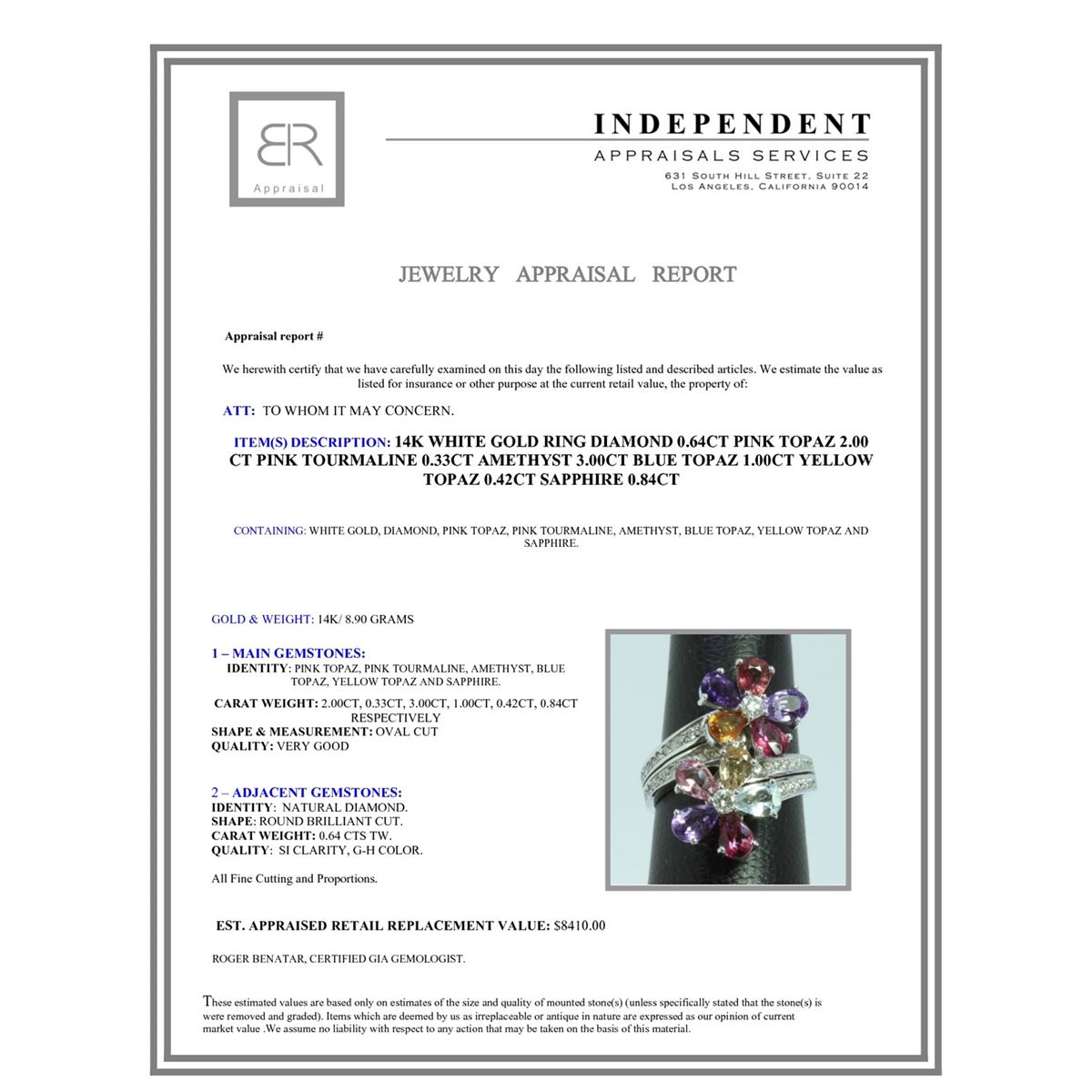 14K WHITE GOLD RING 8.90 GRAM DIAMOND 0.64CT PINK TOPAZ 2.00 CT PINK TOURMALINE 0.33CT AMETHYST 3.00CT BLUE TOPAZ 1.00CT YELLOW TOPAZ 0.42CT SAPPHIRE 0.84CT