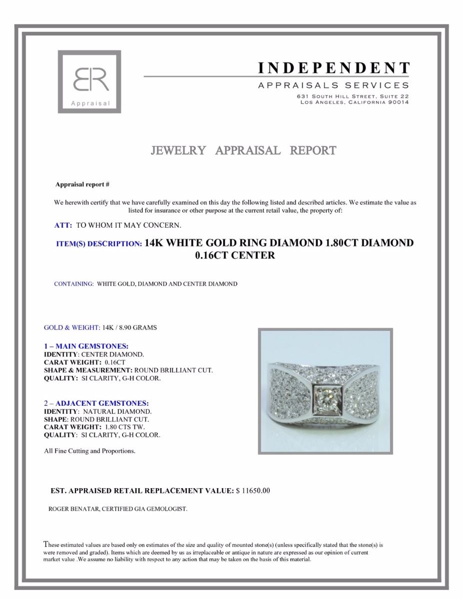 14K WHITE GOLD RING 8.90 GRAM DIAMOND 1.80CT DIAMOND 0.16CT CENTER
