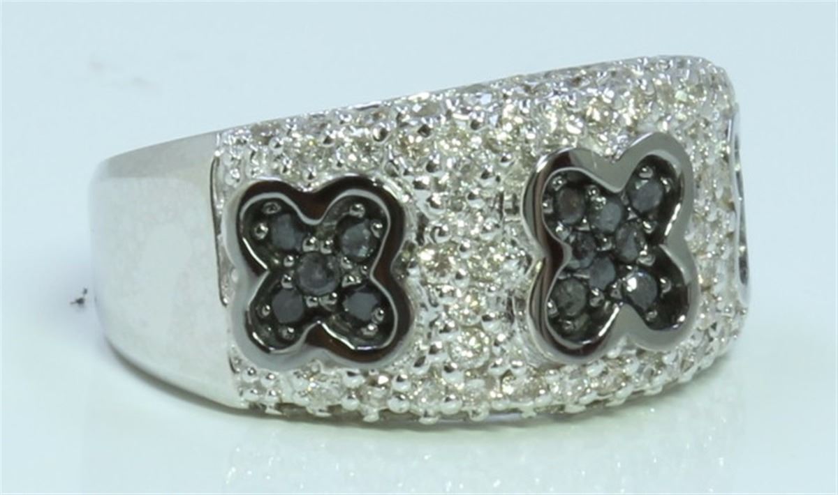 14K WHITE GOLD RING 9.8 GRAM WHITE DIAMOND 0.64CT BLACK DIAMOND 0.34CT