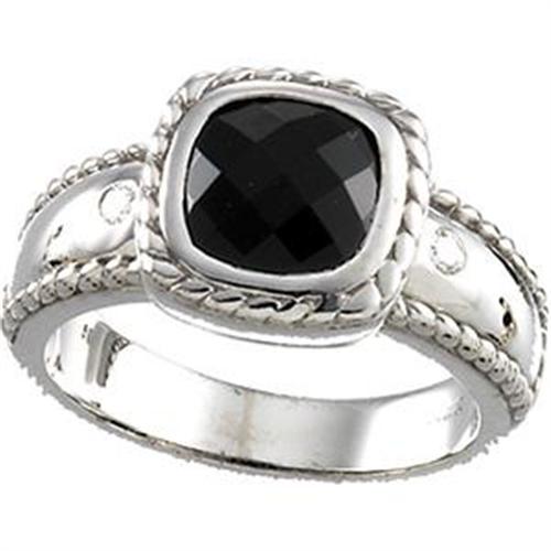 14k White Gold ring featuring a beautiful Cushion Cut BLACK ONYX. The Black Onyx is 8mm across and there is a DIAMOND each side. This ring is a Size 6 and it can be resized.