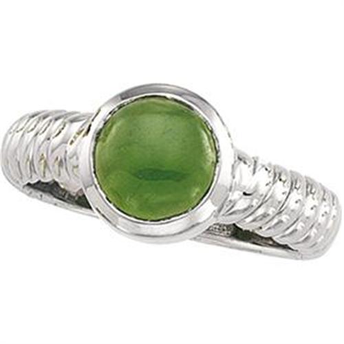 14k White Gold ring featuring a Round GENUINE GREEN JADE that measures 8mm across and = TWO CARATS! This ring is a Size 6 and it can be resized.
