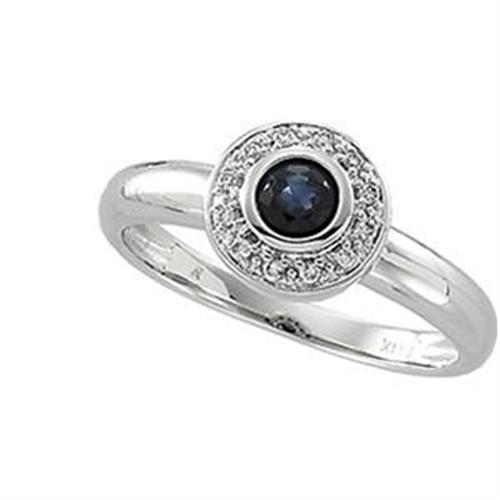 Vintage Style 14k White Gold ring featuring a Genuine Blue Sapphire encircled by Diamonds. This ring is a size 6 and I can easily resize it for you.