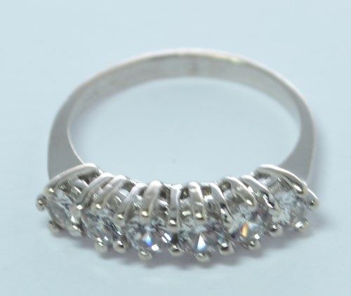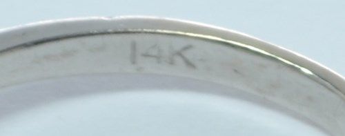 14K WHITE GOLD RING, THE STONES ARE CZ'S, SIZE 6