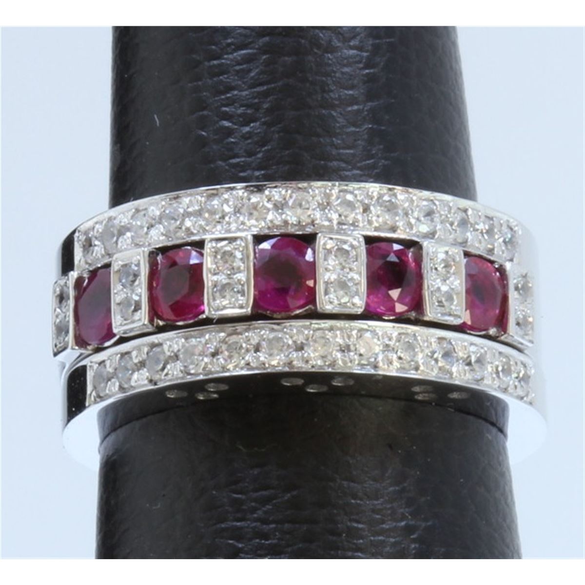 14K WHITE GOLD RINGS 3PCS: 9.14g / Diamond: 0.48ct / Ruby: 0.76ct