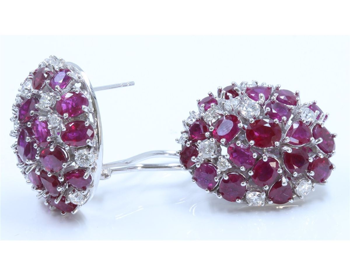 14K WHITE GOLD RUBY EARRING:18g/Ruby:17.55ct/Diamond:2.08ct