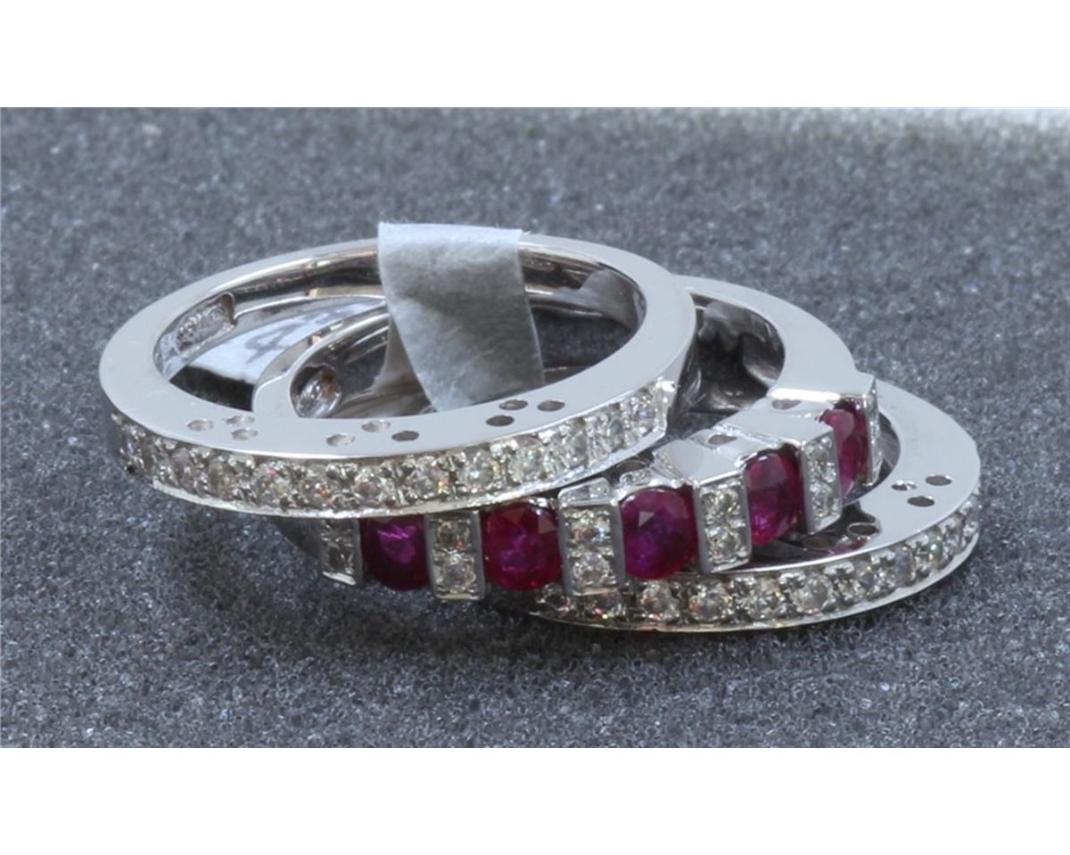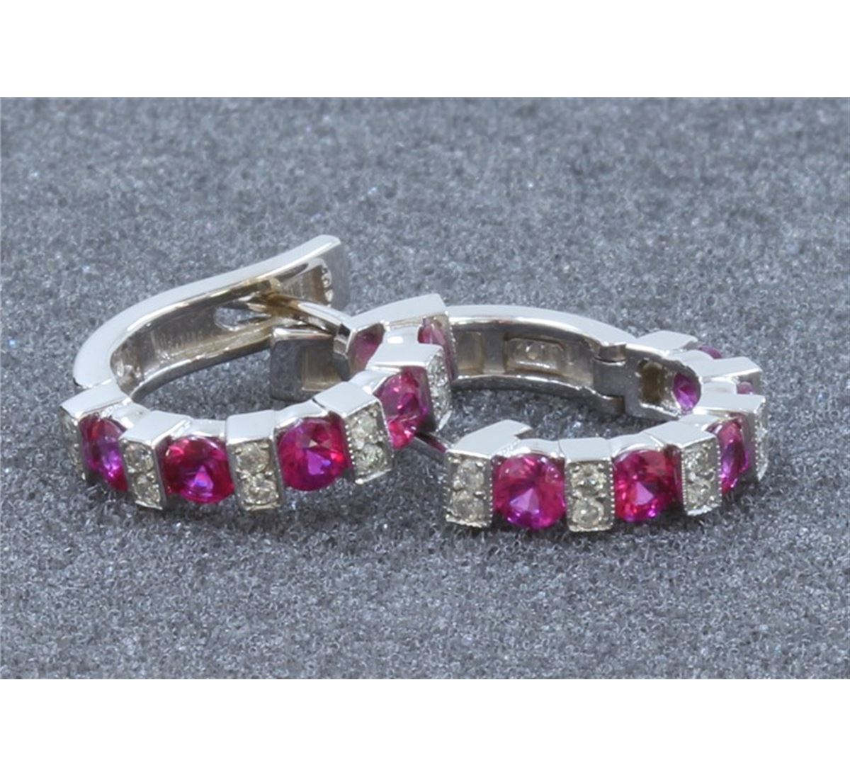 14K WHITE GOLD RUBY EARRING: 3.9g / Diamond: 0.2ct / Ruby: 1.11ct