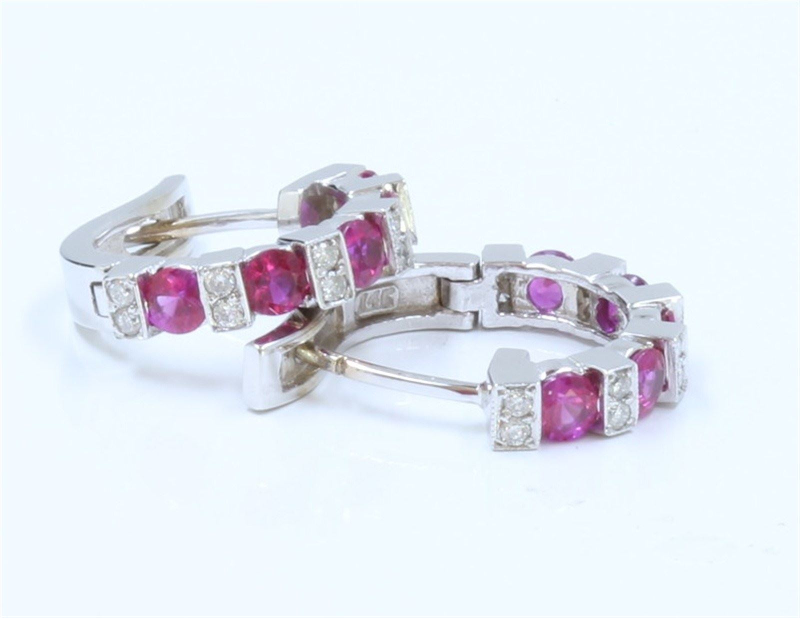 14K WHITE GOLD RUBY EARRING: 3.9g / Diamond: 0.2ct / Ruby: 1.11ct