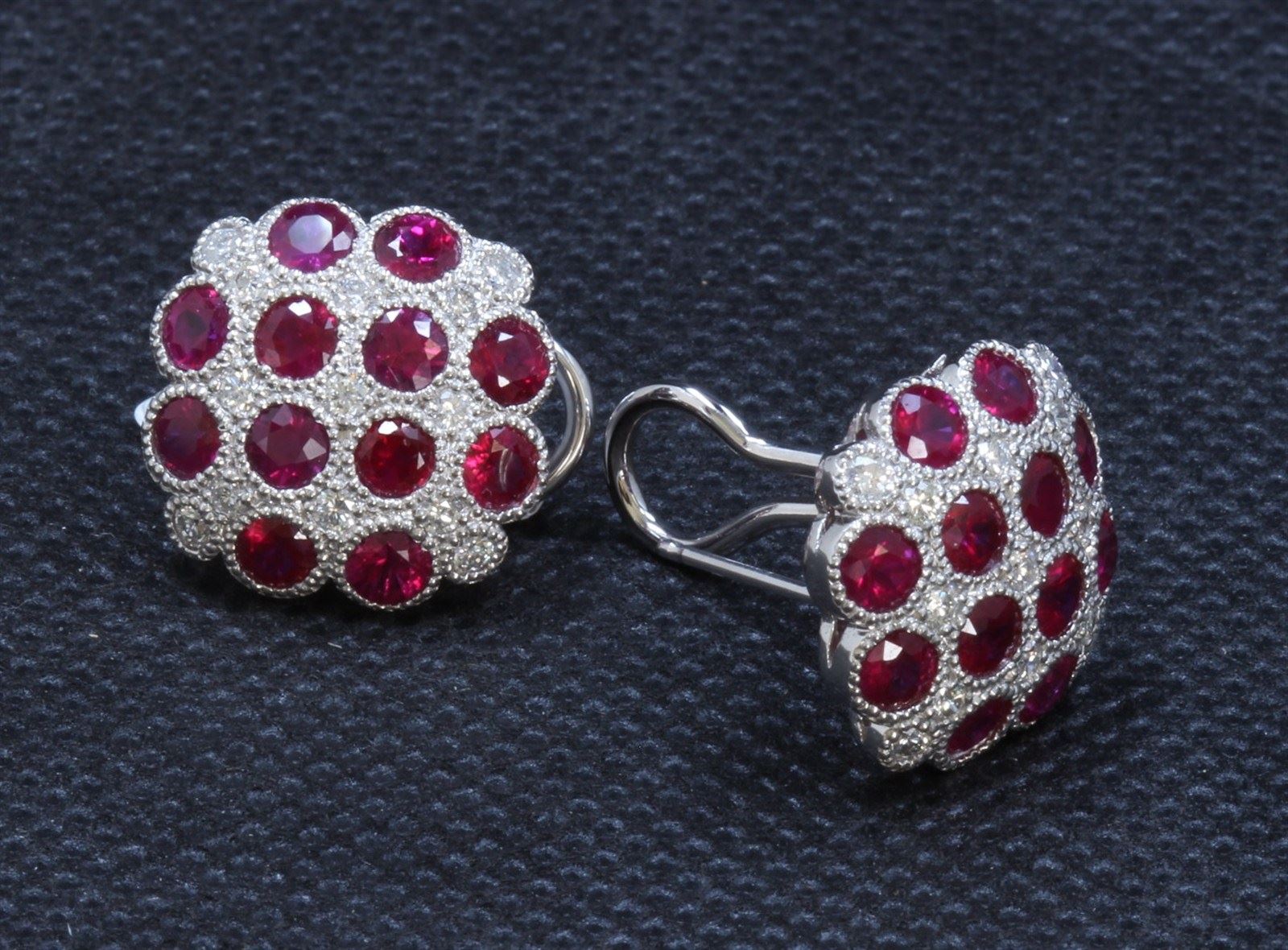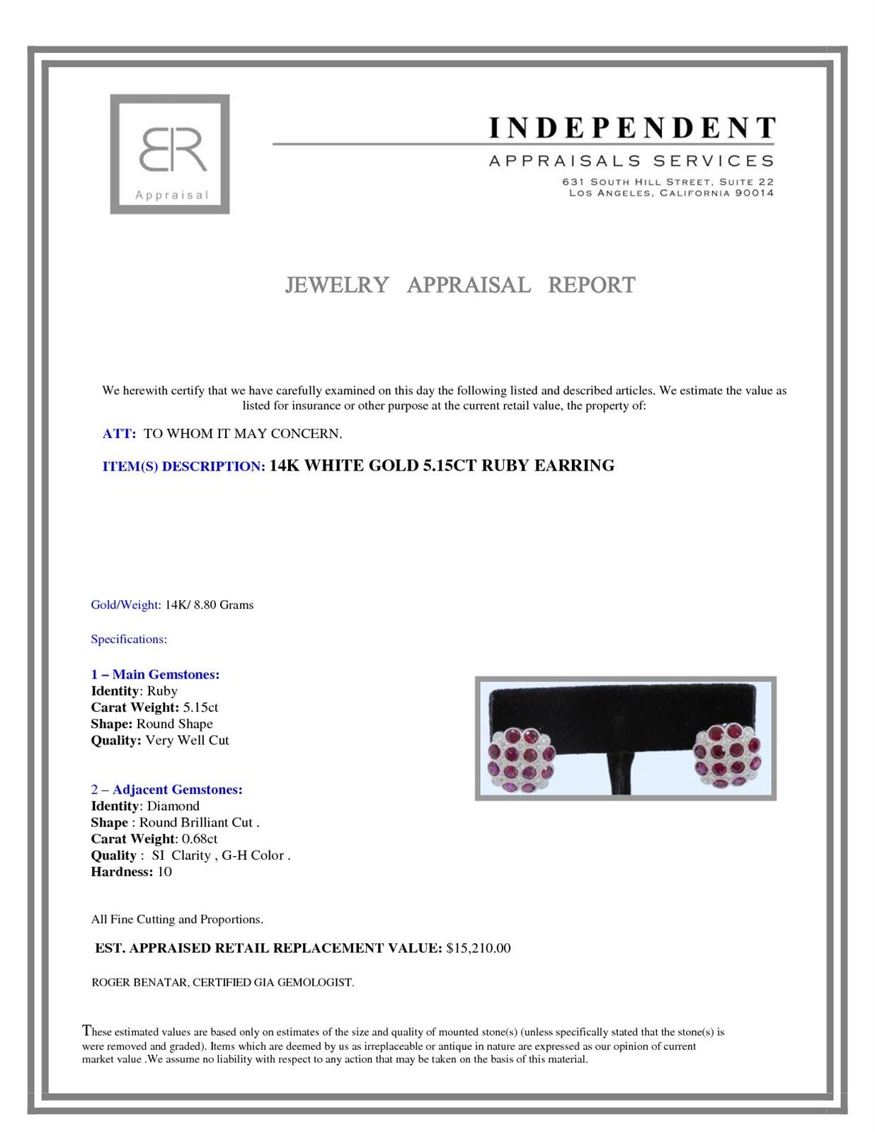 14K WHITE GOLD RUBY EARRING 14K:8.8g/Diamond:0.68ct/Ruby:5.15ct