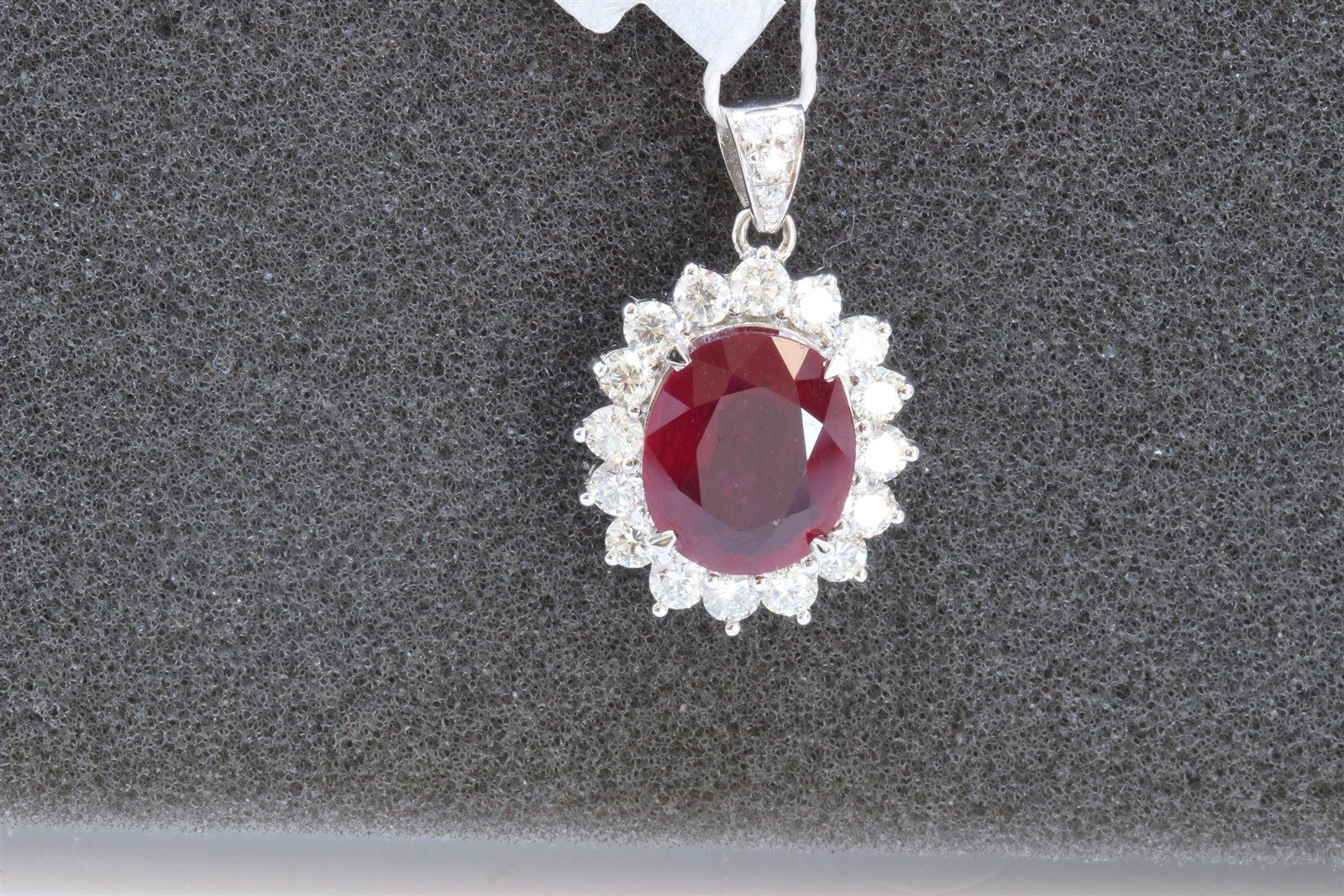 14K WHITE GOLD RUBY PENDANT 14K:4.9g/Diamond:0.07ct/Diamond:1.7ct/Ruby:7.8ct