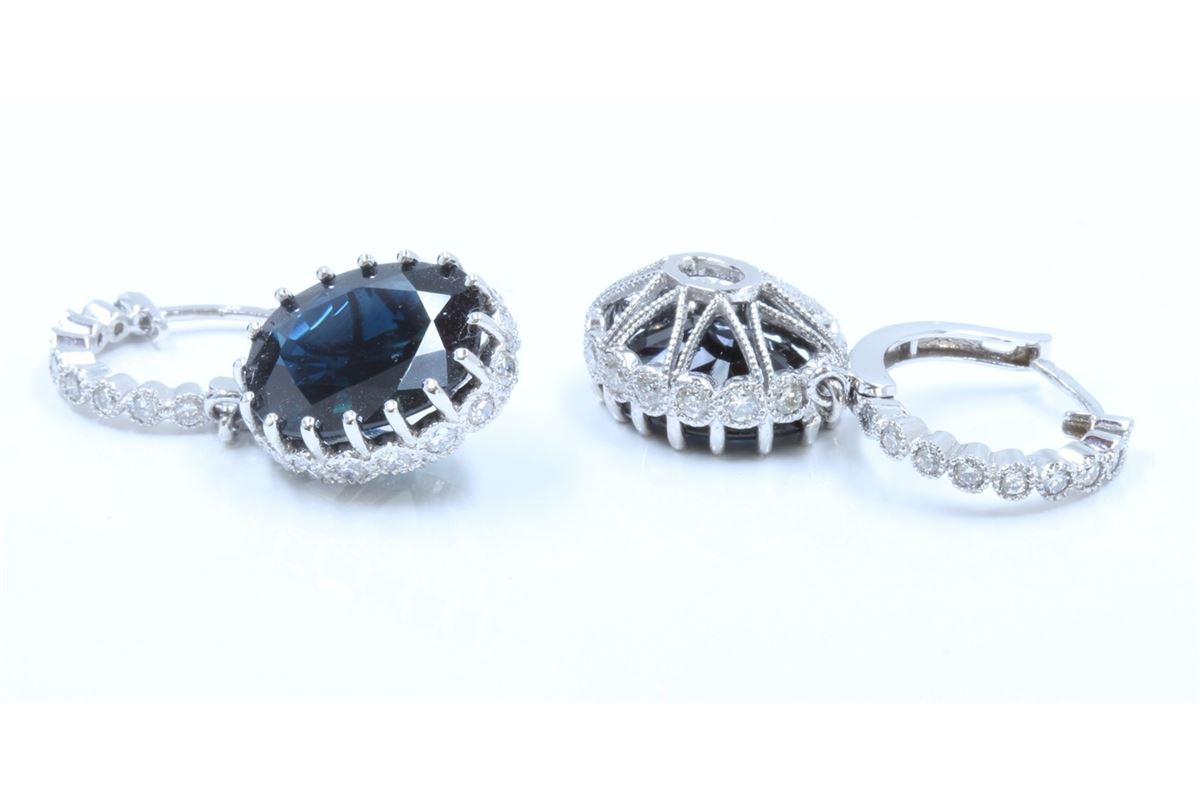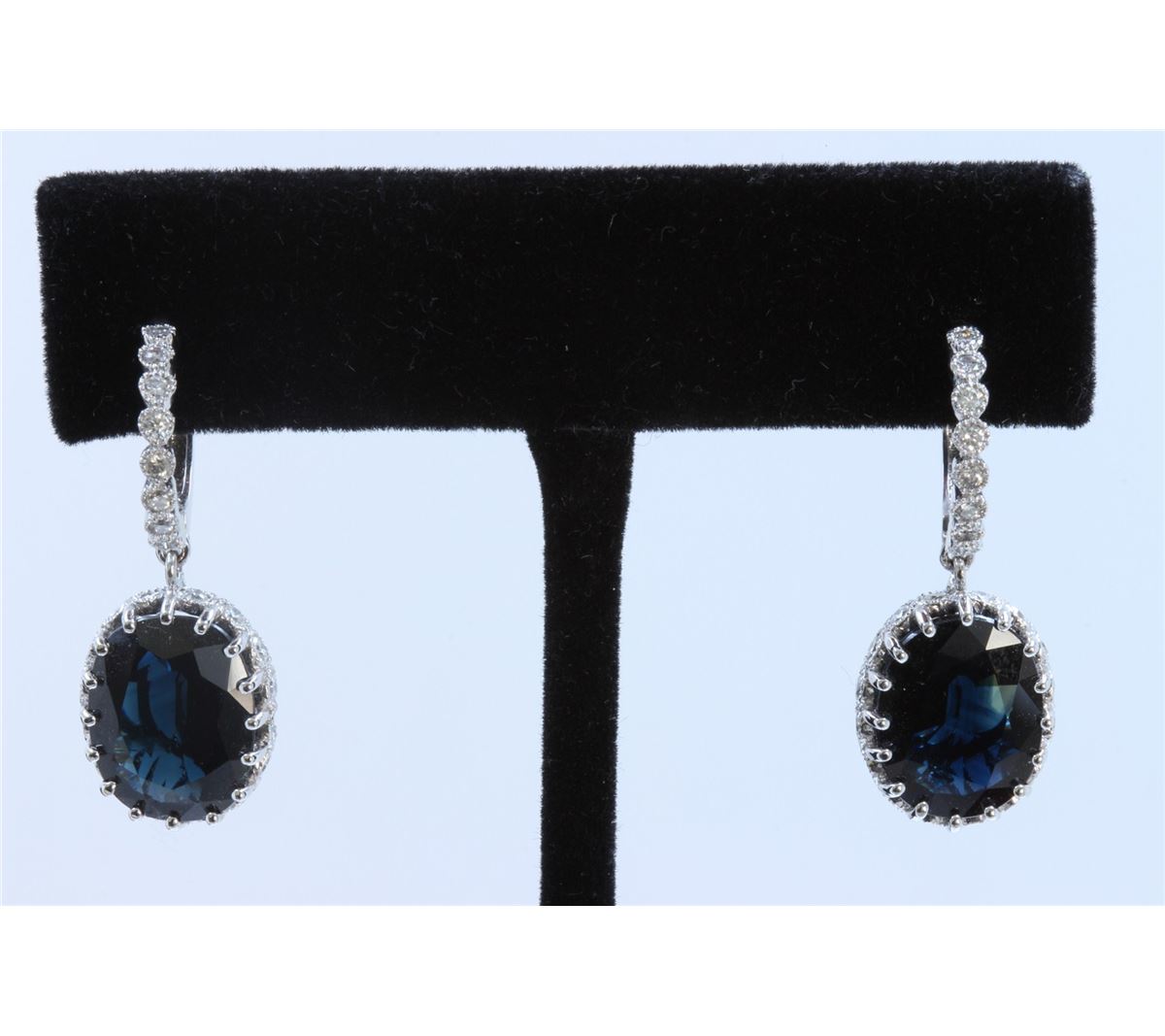 14K WHITE GOLD SAPPHIRE EARRING:6.5g/Diamond:1.3ct/Sapphire:12.97ct