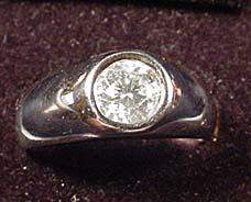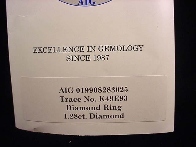 14K WHITE GOLD SOLITAIRE DIAMOND RING - Comes with AIG Appraisal of $14,500.00. One bezel set round brilliant cut diamond. Diamond 1.28 ct, Total Weight 8.90 grams.