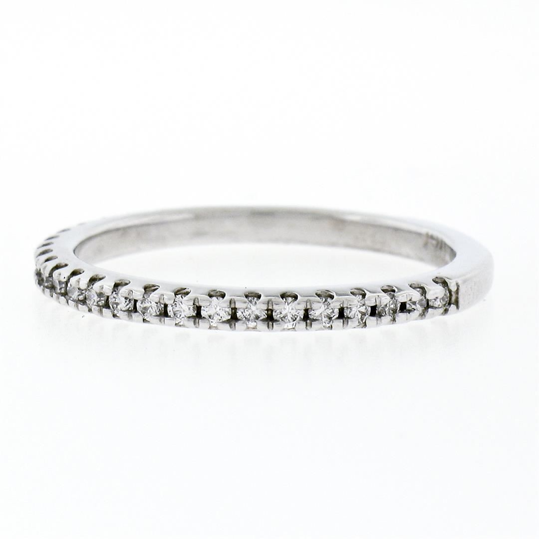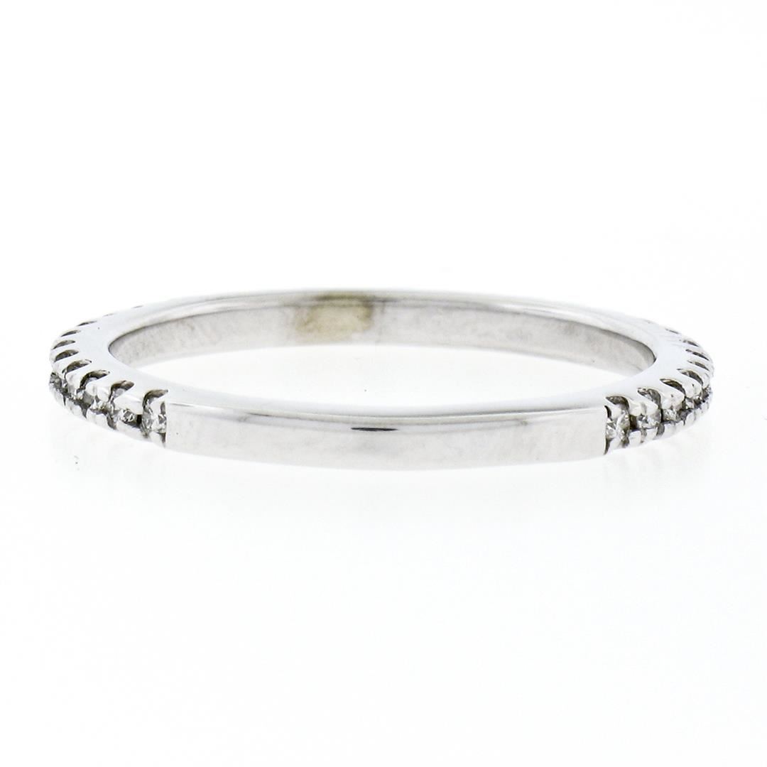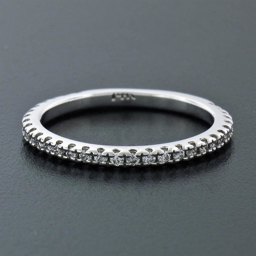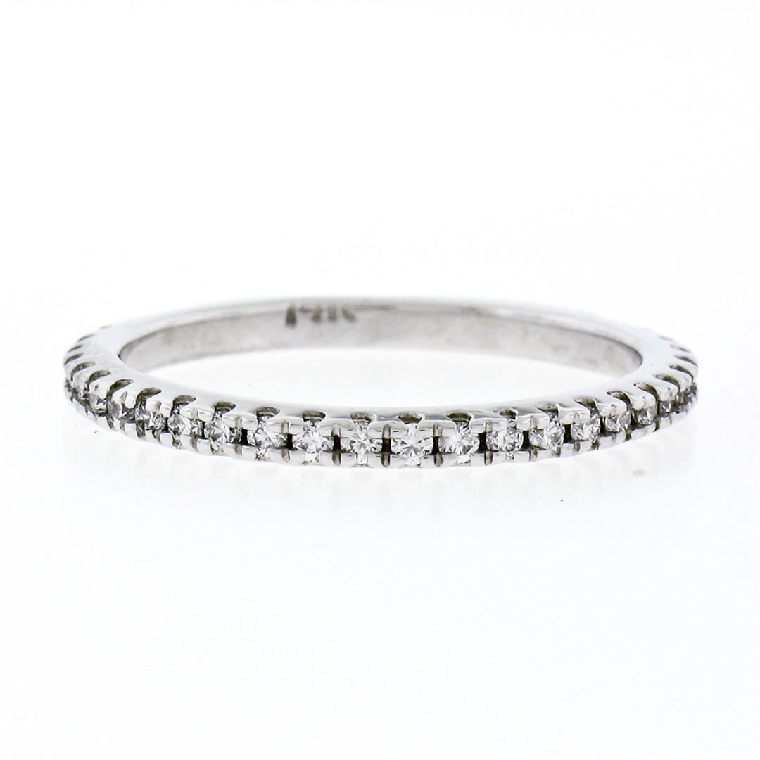 A new solid 14k white gold wedding band ring, with 31 round brilliant cut natural diamonds (F/G- VS1/VS2; 0.17ctw). The ring is size 6.5, weighs a total of 1.85 grams, and measures 1.90mm wide.