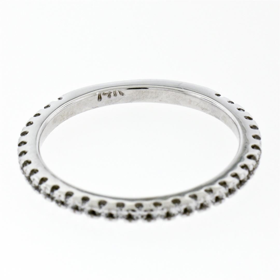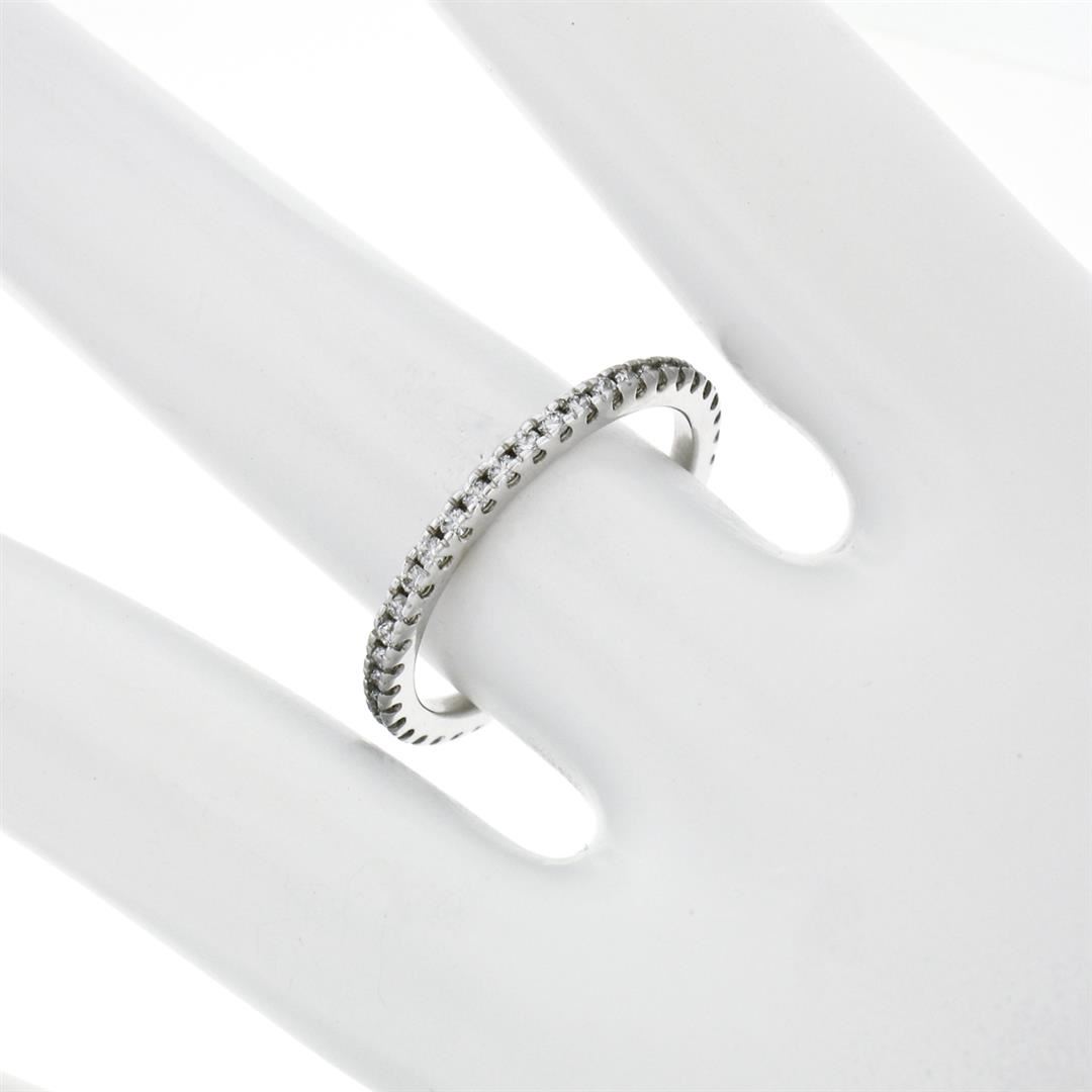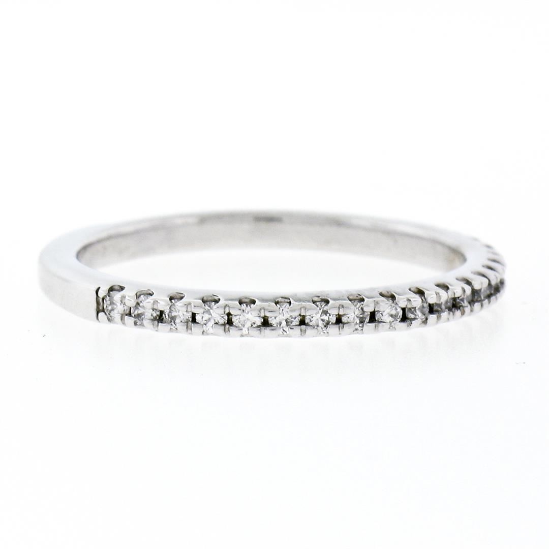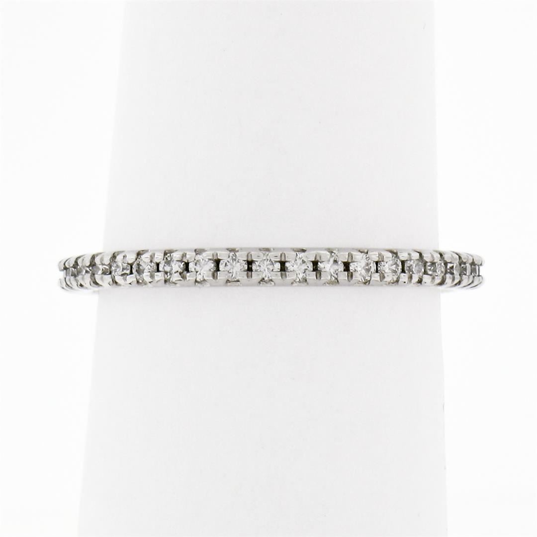 A new solid 14k white gold wedding band ring, with 31 round brilliant cut natural diamonds (F/G- VS1/VS2; 0.17ctw). The ring is size 6.5, weighs a total of 1.85 grams, and measures 1.90mm wide.