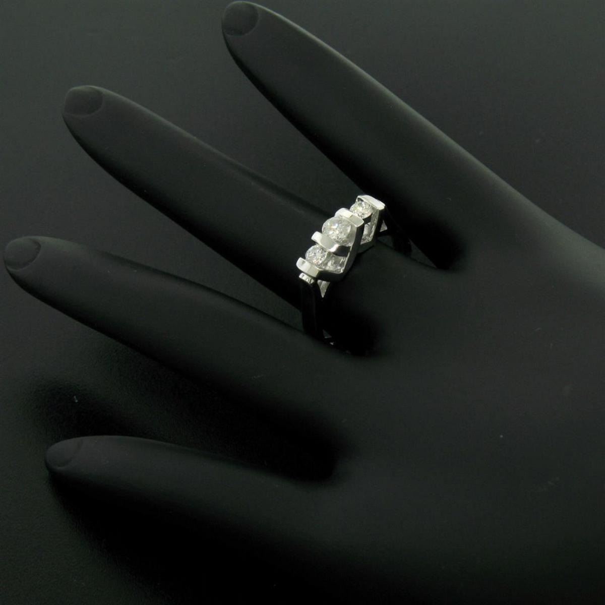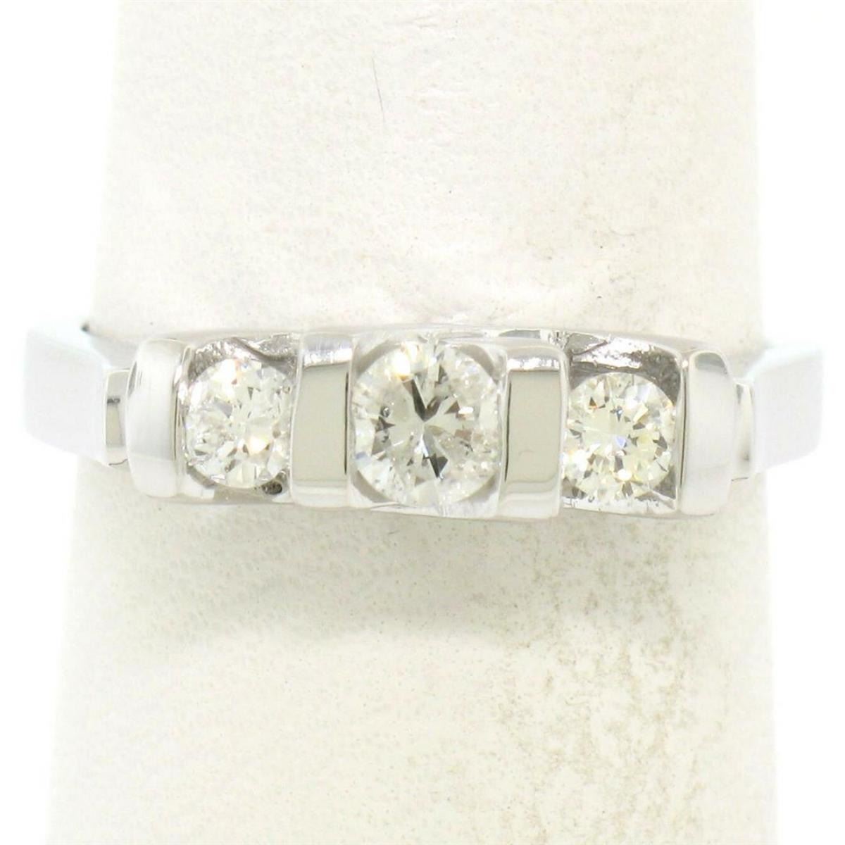 One 14K White Gold 0.40ctw High Bar Set Round Brilliant Cut Diamond Band Ring Sz 6.5. Item Details: Material: 14K Solid White Gold, Weight: 4.16 Grams, Stone(s): (3) Natural Genuine Diamonds - Round Brilliant Cut - Bar Set - G/H Color - VS2/SI1 Clarity, Total Carat Weight: 0.40 (approx.), Ring Size: 6.5 , Ring Width: 4.57mm, Ring Height: 6.33mm rise off the finger, Condition: Like New!