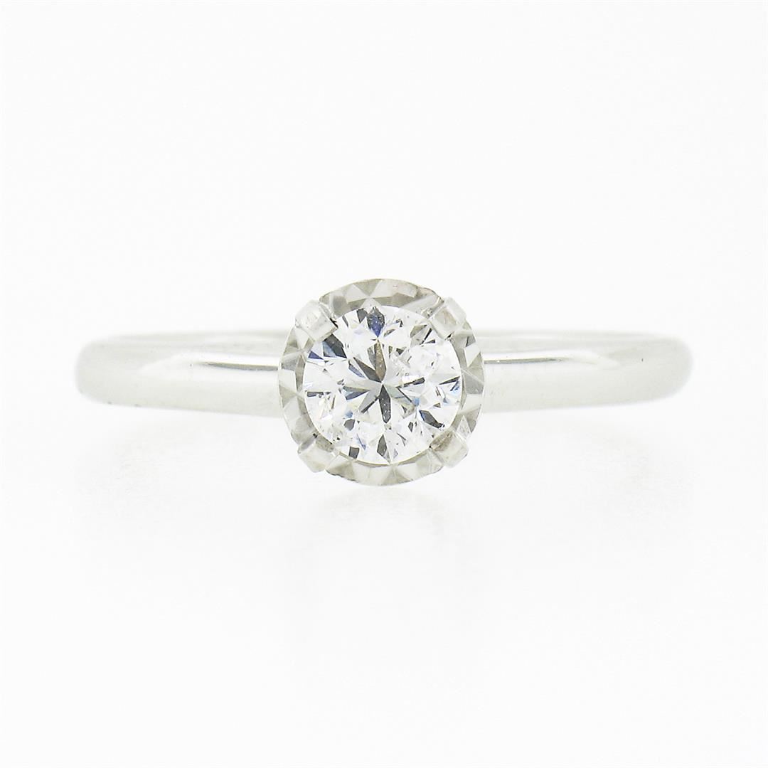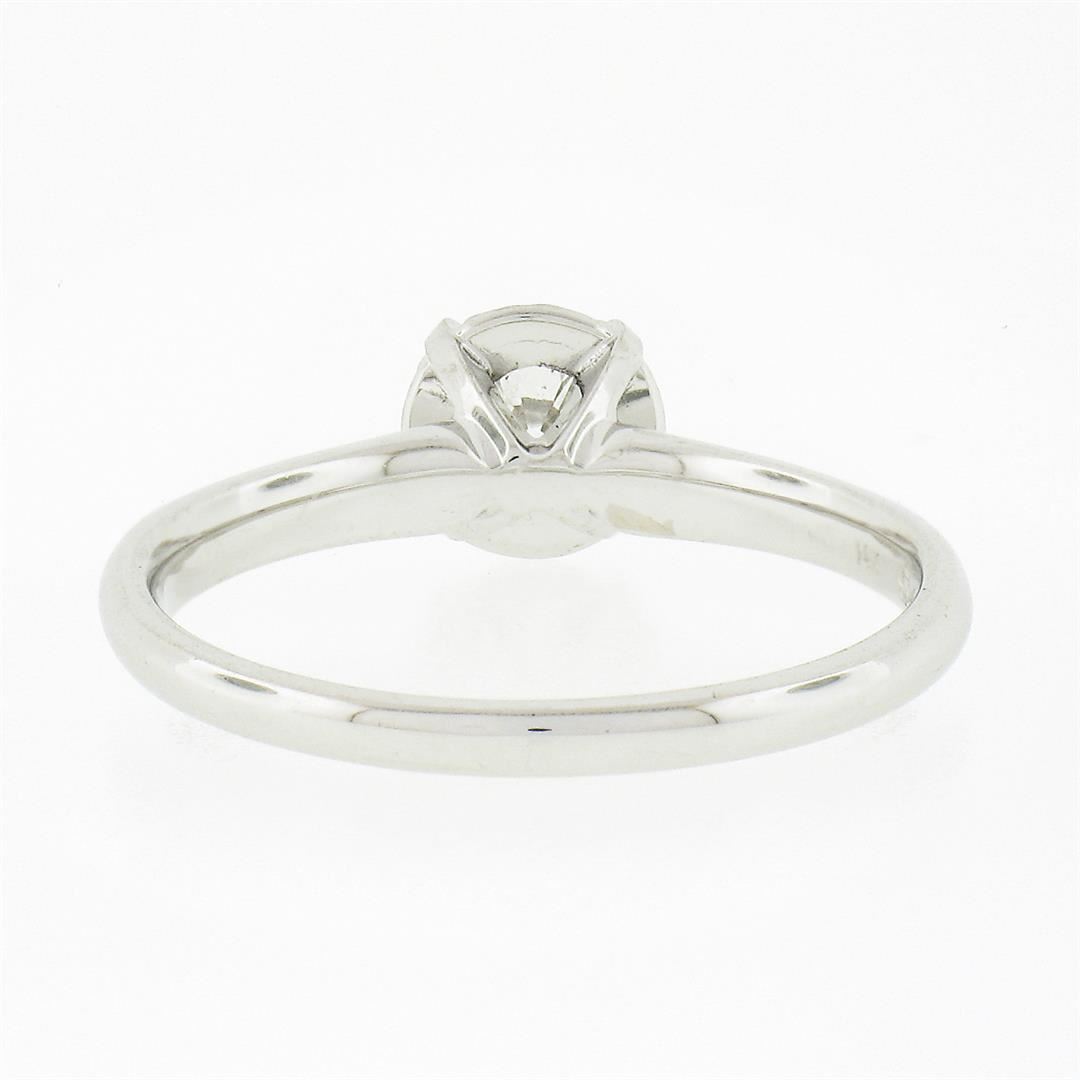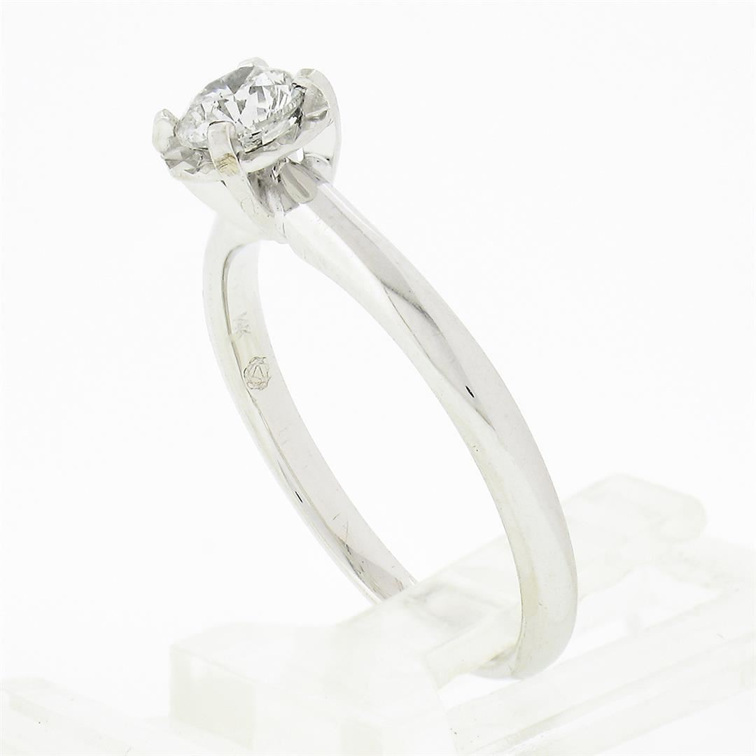 A solid 14k white gold enagement ring, with 1 round brilliant cut natural diamond (G - SI1 ; 0.46ct). The ring is size 7.0, weighs a total of 2.44 grams, and measures 6.45mm wide.