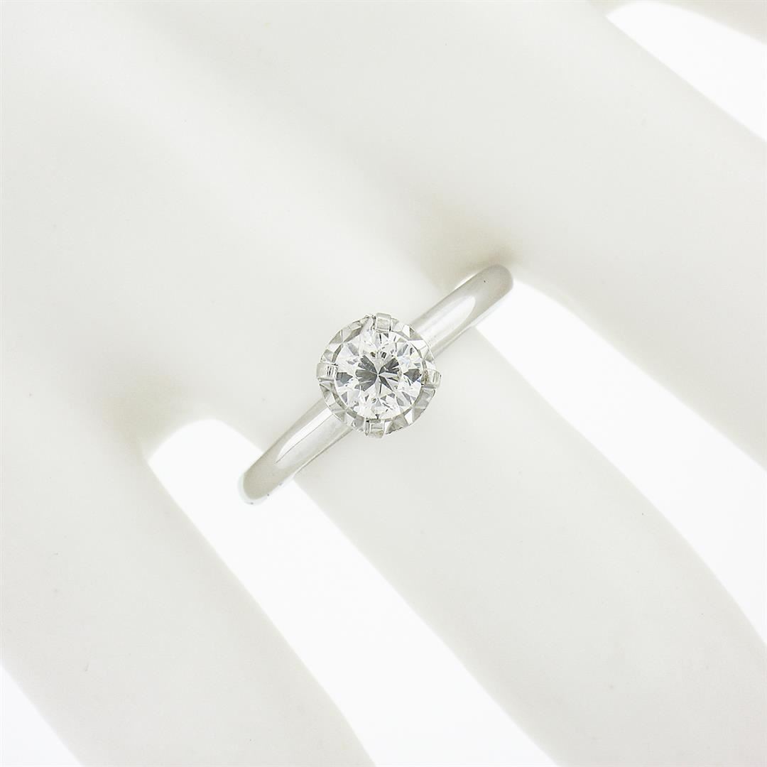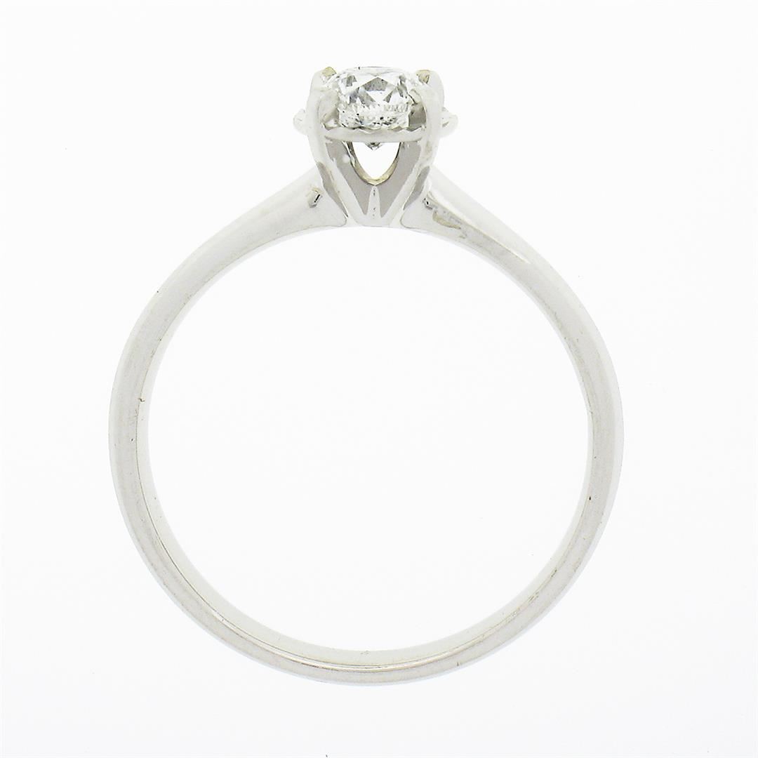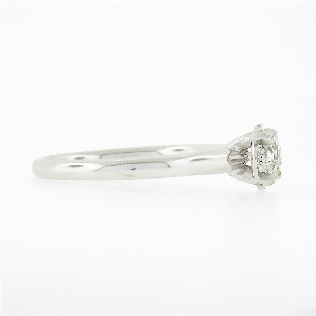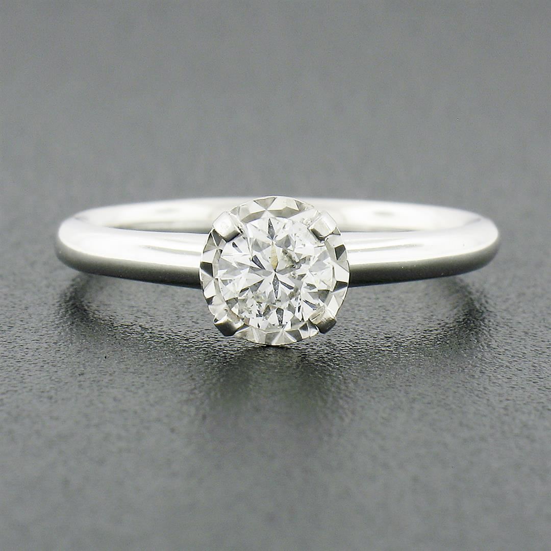A solid 14k white gold enagement ring, with 1 round brilliant cut natural diamond (G - SI1 ; 0.46ct). The ring is size 7.0, weighs a total of 2.44 grams, and measures 6.45mm wide.