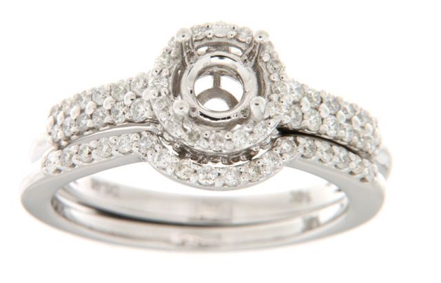 REF-87K7R ---- 14K White Gold 0.46CTW Diamond Wedding Ring Set