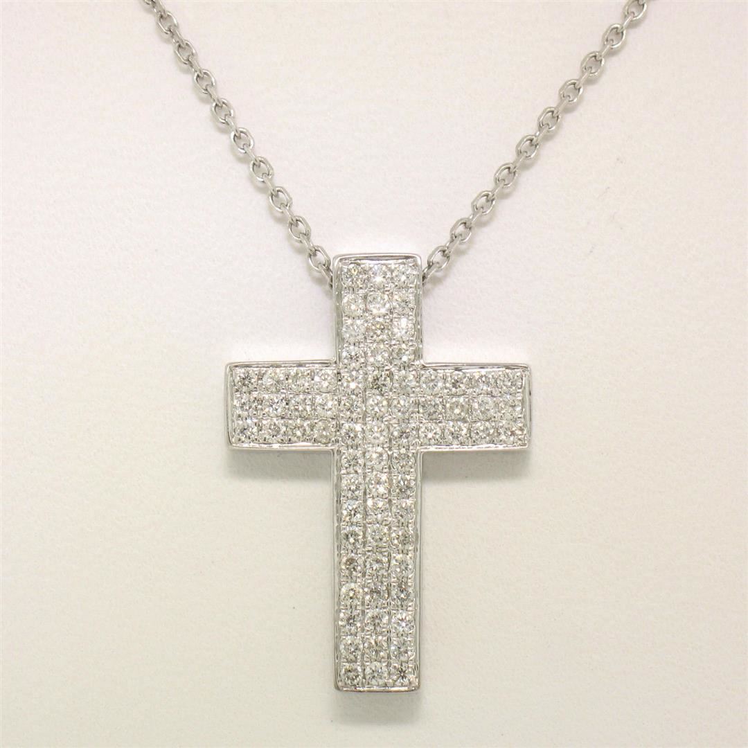 One 14K White Gold 0.51ctw Micro Pav� Diamond Cross Pendant w/ 18" Cable Link Chain. Item Details: Material: 14k Solid White Gold, Weight: 4.9 Grams, Stone(s): (72) Natural Genuine Diamonds - Round Cut - Micropav� Set - VS1/VS2 Clarity - F/G Color - 0.51ctw (approx.), Chain Type: Diamond Cut Cable Link Chain, Chain Length: 18 Inches, Clasp: Lobster Claw Clasp, Width: 15.5mm, Height: 22.22mm Thickness: 3.7mm Signature: 14K Paul Z. 051 Condition: Like New!
