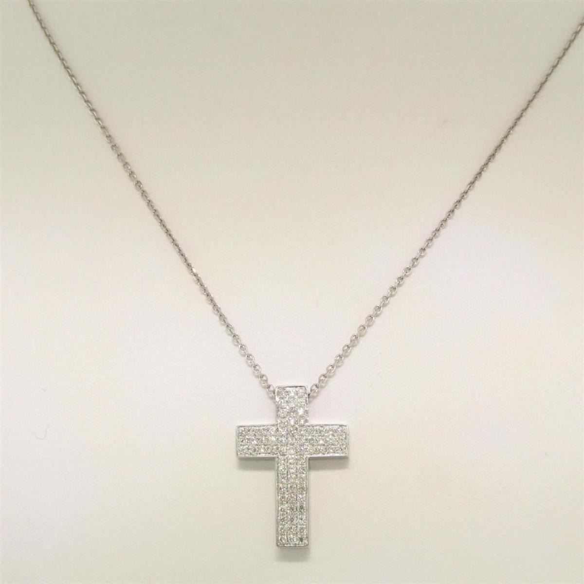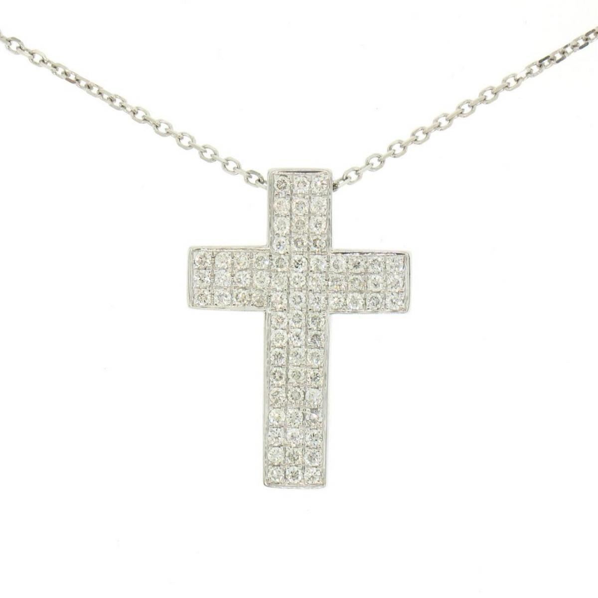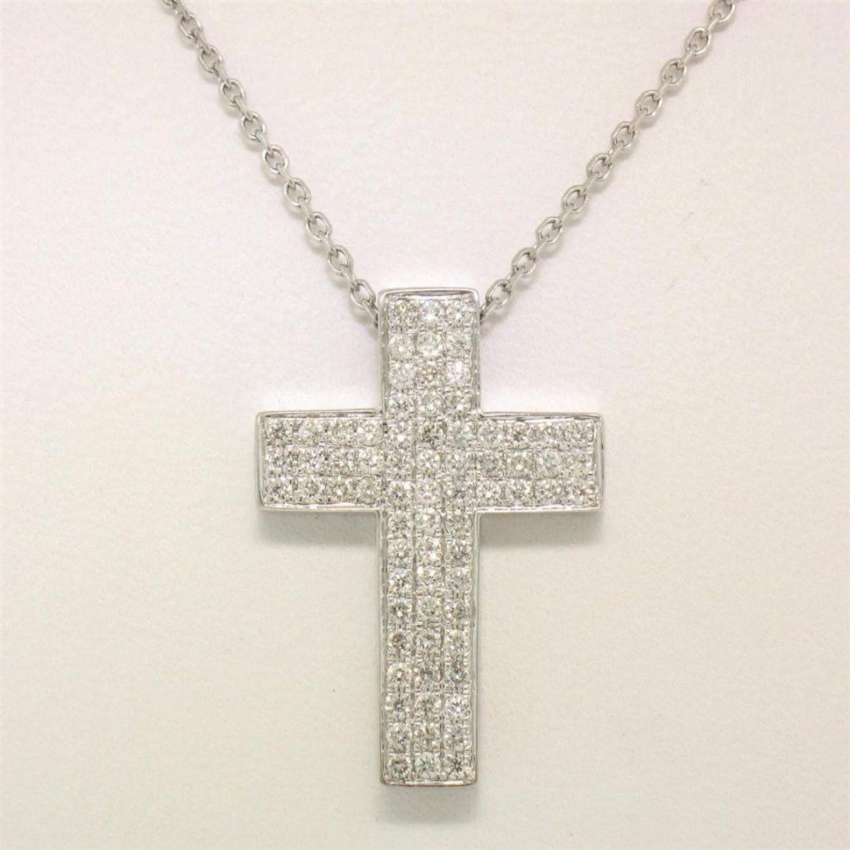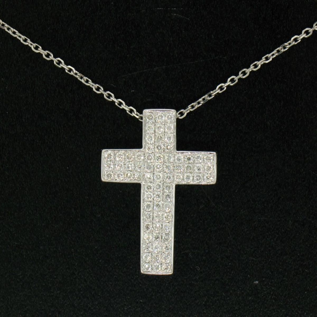 One 14K White Gold 0.51ctw Micro Pavé Diamond Cross Pendant w/ 18" Cable Link Chain. Item Details: Material: 14k Solid White Gold, Weight: 4.9 Grams, Stone(s): (72) Natural Genuine Diamonds - Round Cut - Micropavé Set - VS1/VS2 Clarity - F/G Color - 0.51ctw (approx.), Chain Type: Diamond Cut Cable Link Chain, Chain Length: 18 Inches, Clasp: Lobster Claw Clasp, Width: 15.5mm, Height: 22.22mm Thickness: 3.7mm Signature: 14K Paul Z. 051 Condition: Like New!