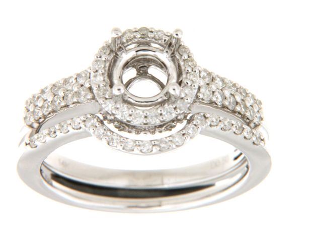 REF-93X7Y ---- 14K White Gold 0.52CTW Diamond Wedding Ring Set