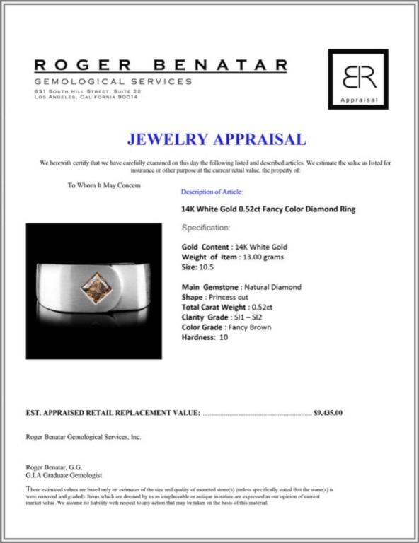 Regarding Appraised Jewelry and Loose Stones - Auctionfarm sends them out to a third party for Retail Replacement Value Appraisals, which are the most common. These types of evaluations are written for insurance needs. This would be the cost to replace the jewelry with an item of equal quality and kind, considered to be the current market price or the replacement value. This type of appraisal is done to protect you in the event of damage or loss of a valuable item. Our appraisals are conducted by independent 3rd Party appraisal firms that utilizes Certified GIA Gemologist. Appraisals should be used for verification of gemstone and/or metal weight, size, and grade only, not actual value. Appraisal value should be considered for insurance purposes only, not actual value, as price varies greatly from retail locations thru out the world. Items should not be purchased with the expectation to resell for appraisal price, or for profit.