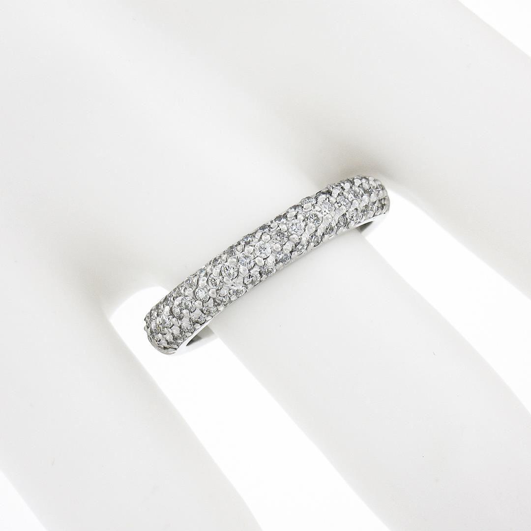 A solid 14k white gold 3 row stack band ring, with 61 round brilliant cut natural diamonds (G/H - SI1/SI2 ; 0.60ctw). The ring is size 7.0, weighs a total of 4.05 grams, and measures 3.7mm wide.