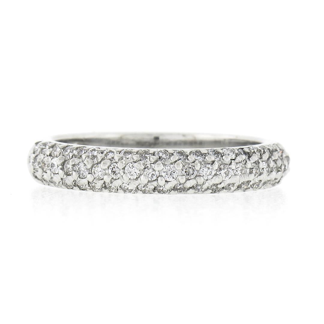 A solid 14k white gold 3 row stack band ring, with 61 round brilliant cut natural diamonds (G/H - SI1/SI2 ; 0.60ctw). The ring is size 7.0, weighs a total of 4.05 grams, and measures 3.7mm wide.