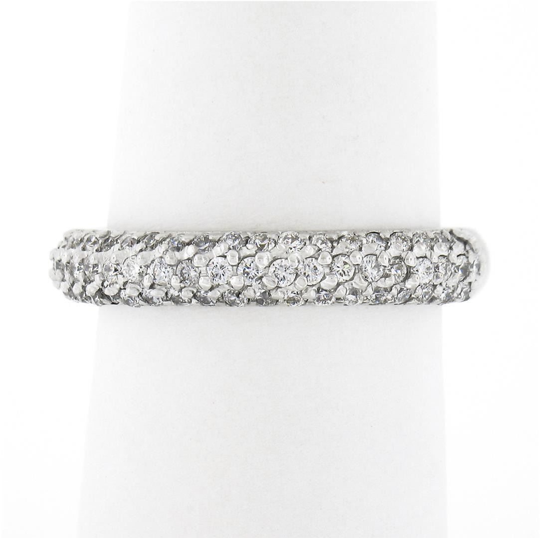 A solid 14k white gold 3 row stack band ring, with 61 round brilliant cut natural diamonds (G/H - SI1/SI2 ; 0.60ctw). The ring is size 7.0, weighs a total of 4.05 grams, and measures 3.7mm wide.