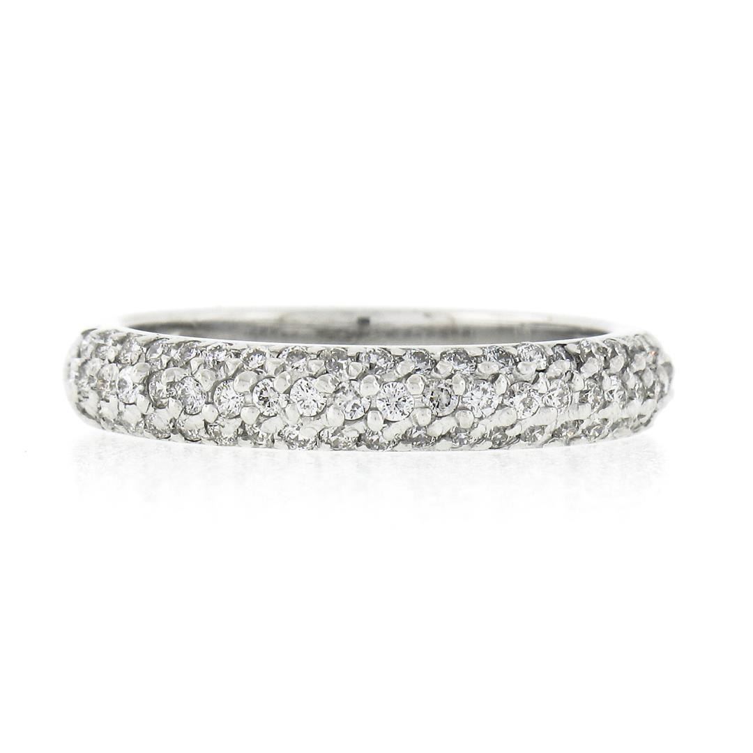 14K White Gold 0.60 ctw Round Pave Diamond 3 Row Domed Stack Wedding Band Ring