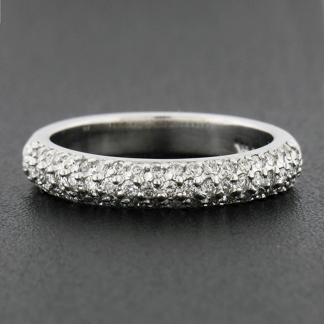 14K White Gold 0.60 ctw Round Pave Diamond 3 Row Domed Stack Wedding Band Ring