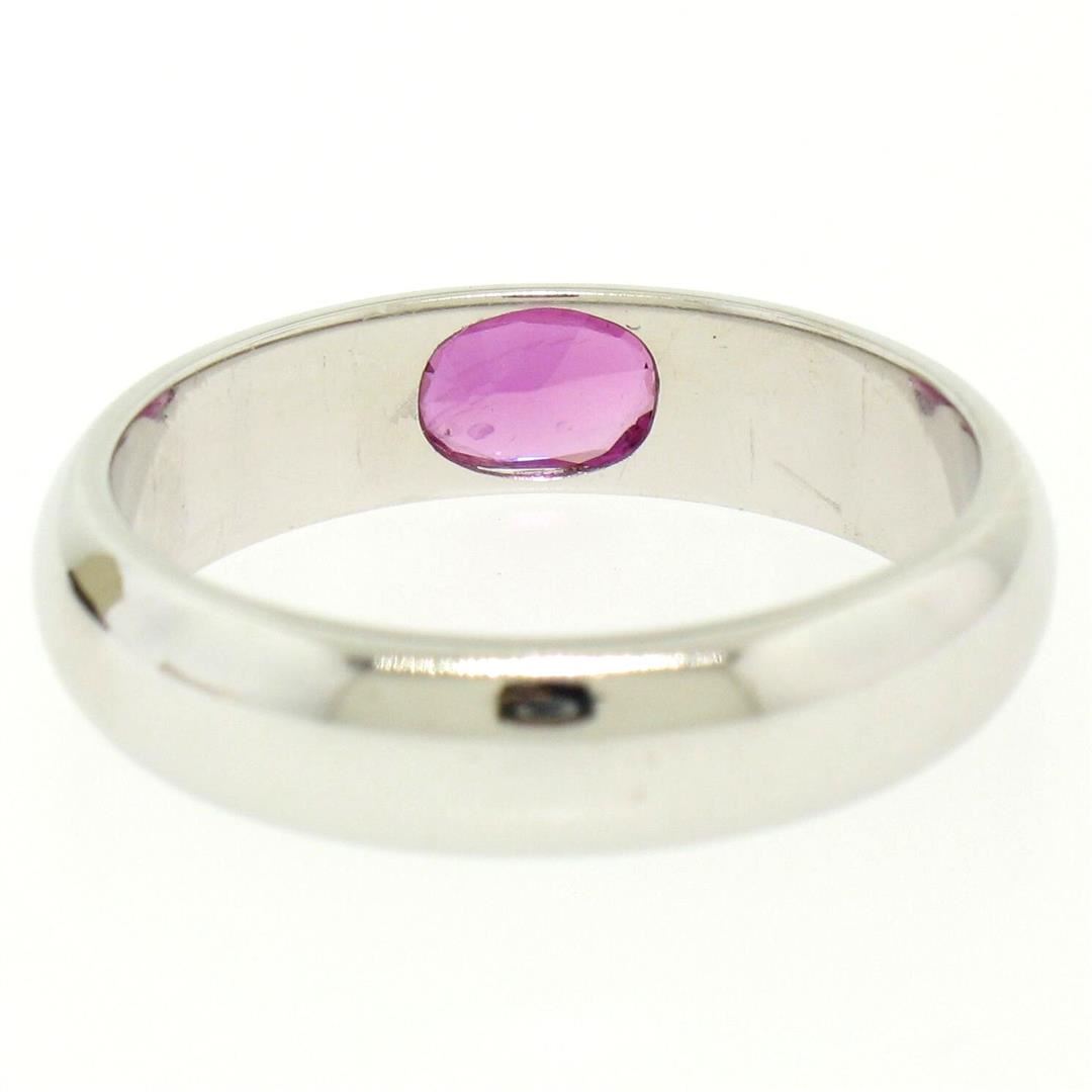 A new solid 14k white gold solitaire band ring with 1 oval cut natural ruby (0.62ct). The ring is size 7.5, weighs a total of 5.5 grams, and measures 4.90mm wide.
