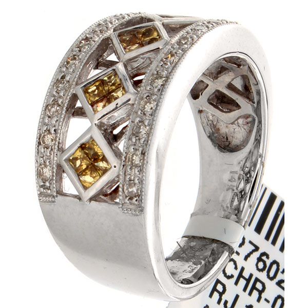 14K White Gold 0.65ctw Yellow Sapphire & Diamond Ring **|**|** 14K White Gold 0.65ctw Yellow Sapphire & Diamond Ring --- 20 Diamonds @0.25CT --- 16 Yellow Sapphire @0.4CT --- Metal: 14K White Gold --- SKU#276020 *** ; MSRP: $3600