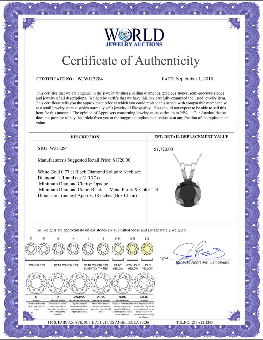 REF-53X7F - SKU: WJ13284 ---- 14K White Gold 0.77 ct Black Diamond Solitaire Necklace