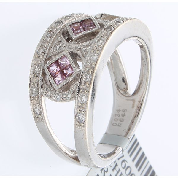 14K White Gold 0.80ctw Pink Sapphire & Diamond Ring **|**|** 14K White Gold 0.80ctw Pink Sapphire & Diamond Ring --- 32 Diamonds @0.34CT --- 12 Pink Sapphire @0.46CT --- Metal: 14K White Gold --- SKU#276008 *** ; MSRP: $3100