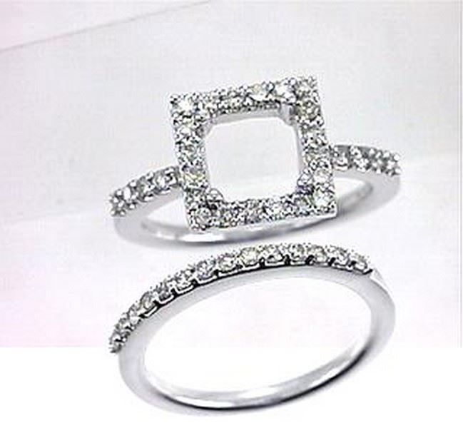 REF-86K5R ---- 14K White Gold 0.86CTW Diamond Wedding Ring Set