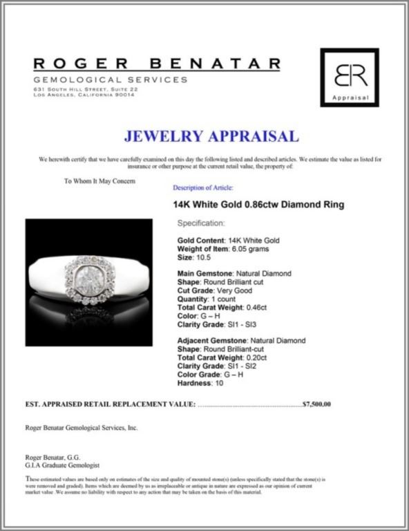 Regarding Appraised Jewelry and Loose Stones - Auctionfarm sends them out to a third party for Retail Replacement Value Appraisals, which are the most common. These types of evaluations are written for insurance needs. This would be the cost to replace the jewelry with an item of equal quality and kind, considered to be the current market price or the replacement value. This type of appraisal is done to protect you in the event of damage or loss of a valuable item. Our appraisals are conducted by independent 3rd Party appraisal firms that utilizes Certified GIA Gemologist. Appraisals should be used for verification of gemstone and/or metal weight, size, and grade only, not actual value. Appraisal value should be considered for insurance purposes only, not actual value, as price varies greatly from retail locations thru out the world. Items should not be purchased with the expectation to resell for appraisal price, or for profit.