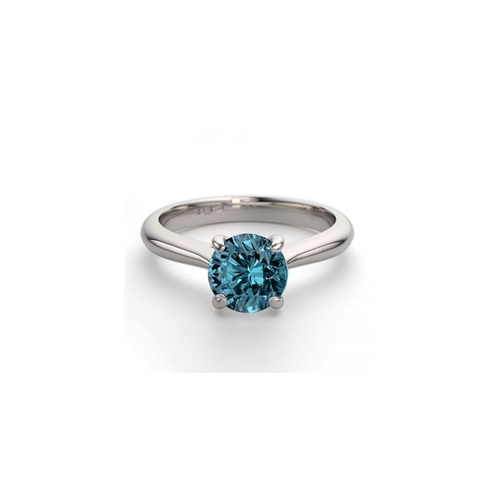 14K White Gold Jewelry 0.91 ctw Blue Diamond Solitaire Ring