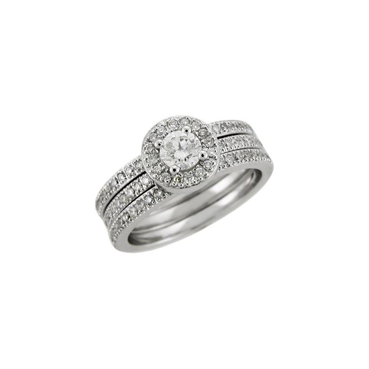 REF-141X2Y ---- 14K White Gold 0.95CTW Diamond Wedding Ring Set