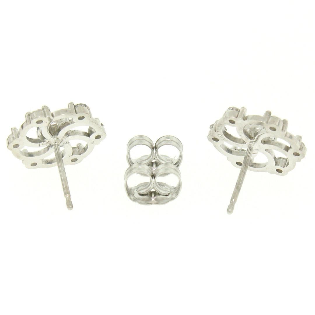 One Vintage 14K White Gold 1.0ctw Diamond & Sapphire Open Flower Design Stud Earring. Item Details - Material: 14k Solid White Gold, Weight: 2.3 Grams, Stone(s): (2) Natural Genuine Sapphire - Round Cut - Prong Set - Royal Blue Color - 0.60ctw (approx.), (12) Natural Genuine Diamonds - Single Cut - Prong Set - F/G Color - VS1 Clarity - 0.40ctw (approx.), Total Carat Weight: 1.00 (approx.), Backing: Post Backings w/ Butterfly Fastening , Width: 10.9mm, Thickness: 3.10mm, Condition: Vintage piece. Excellent condition!