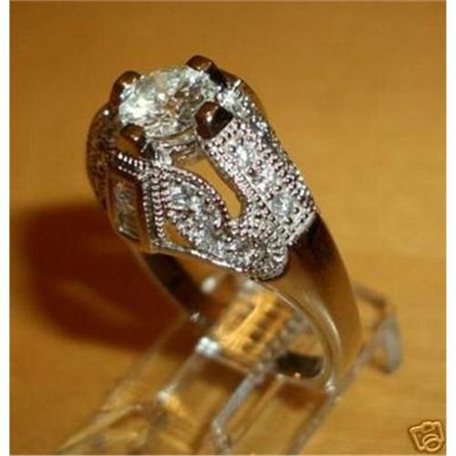 <P>Up for auction is this gorgeous antique style engagement ring. This is a very beautiful ring set with of one genuine, natural round diamond in the center. This diamond is F color, SI1 clarity and weighs .56 carat. It is extremely brilliant and sparkly and appears to be larger than it is. There are twenty-two Round Brilliant Diamonds pave-set and six Baguette Diamonds channel-set throughout this ring. These diamonds are G color, VS/SI clarity and weigh a total .45 carat. The total diamond weight of this ring is 1.01 carat. This ring is 14 KT White Gold, weighs 3.6 grams and is a finger size 7, which can be easily sized. This ring will be accompanied by an appraisal by a GIA Certified Diamond Grader with the retail replacement value of $3,769.00. I will ship this ring promptly in a gift box. Good Luck with these great deals.</P>