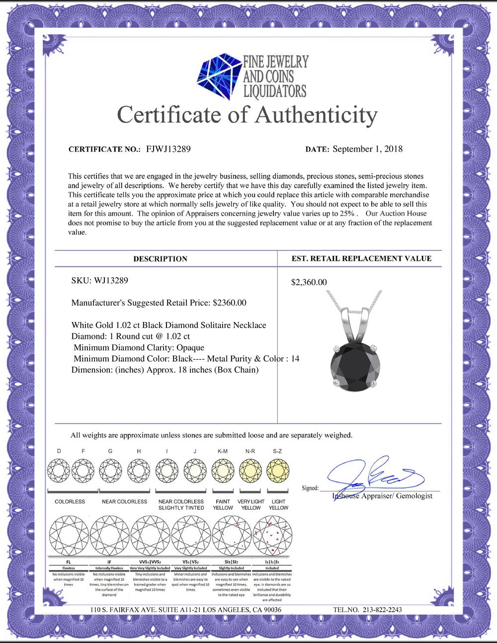 All property is sold “AS IS”, and ALL SALES ARE FINAL. Property is open to thorough public inspection. It is the Bidder’s responsibility to determine condition, age, genuineness, value or any other determinative factor. WJA may attempt to describe the merchandise in advertising and on the Internet but makes no representations. In no event shall WORLD JEWELRY AUCTION be held responsible for having made or implied any warranty of merchantability or fitness for a particular purpose. Bidder shall be the sole judge of value.